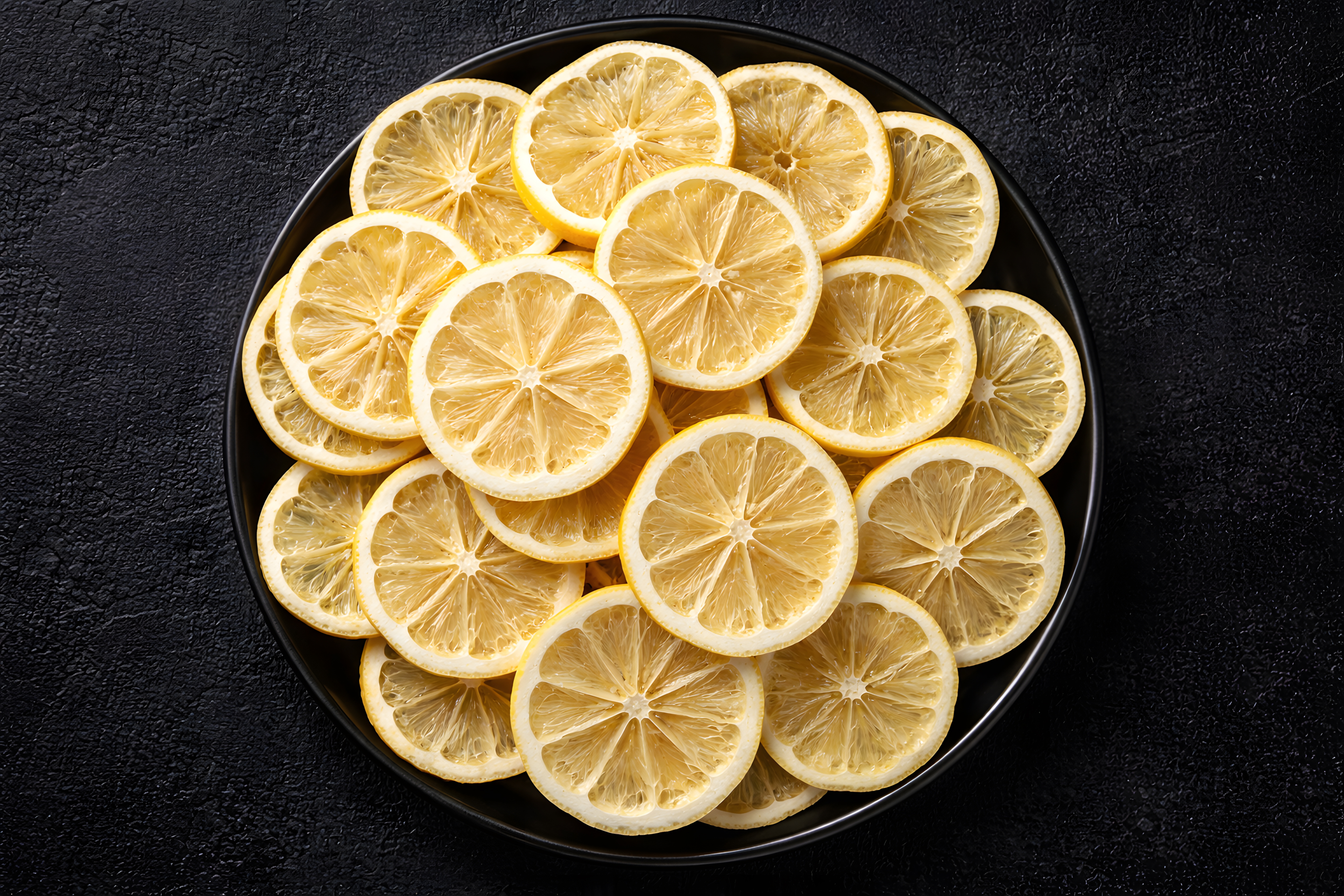 Zitronenscheiben auf schwarzem Teller von oben von Marco Verch unter Creative Commons 4.0