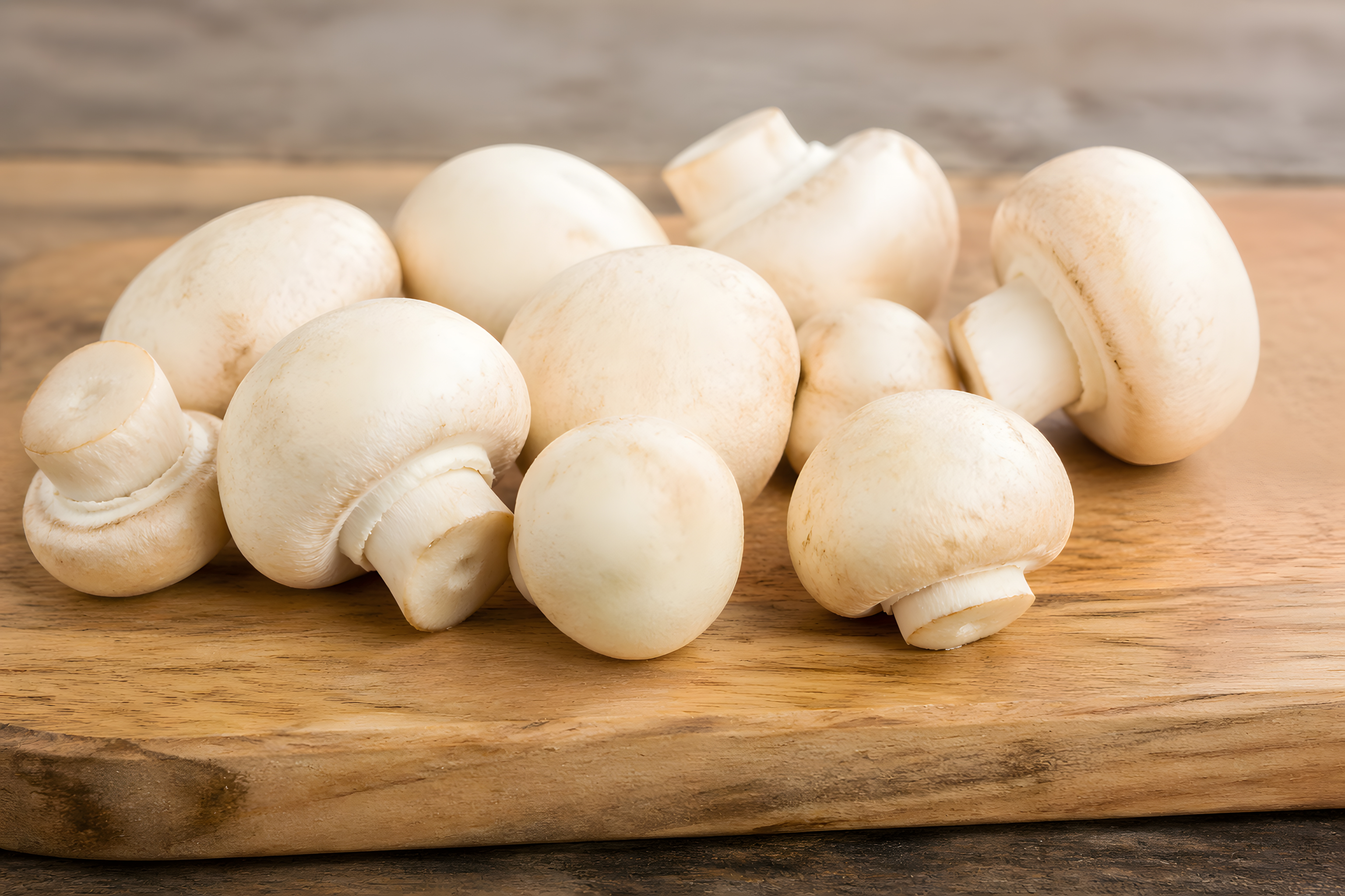 Frische weiße Champignons auf einem Holzbrett von Marco Verch unter Creative Commons 4.0