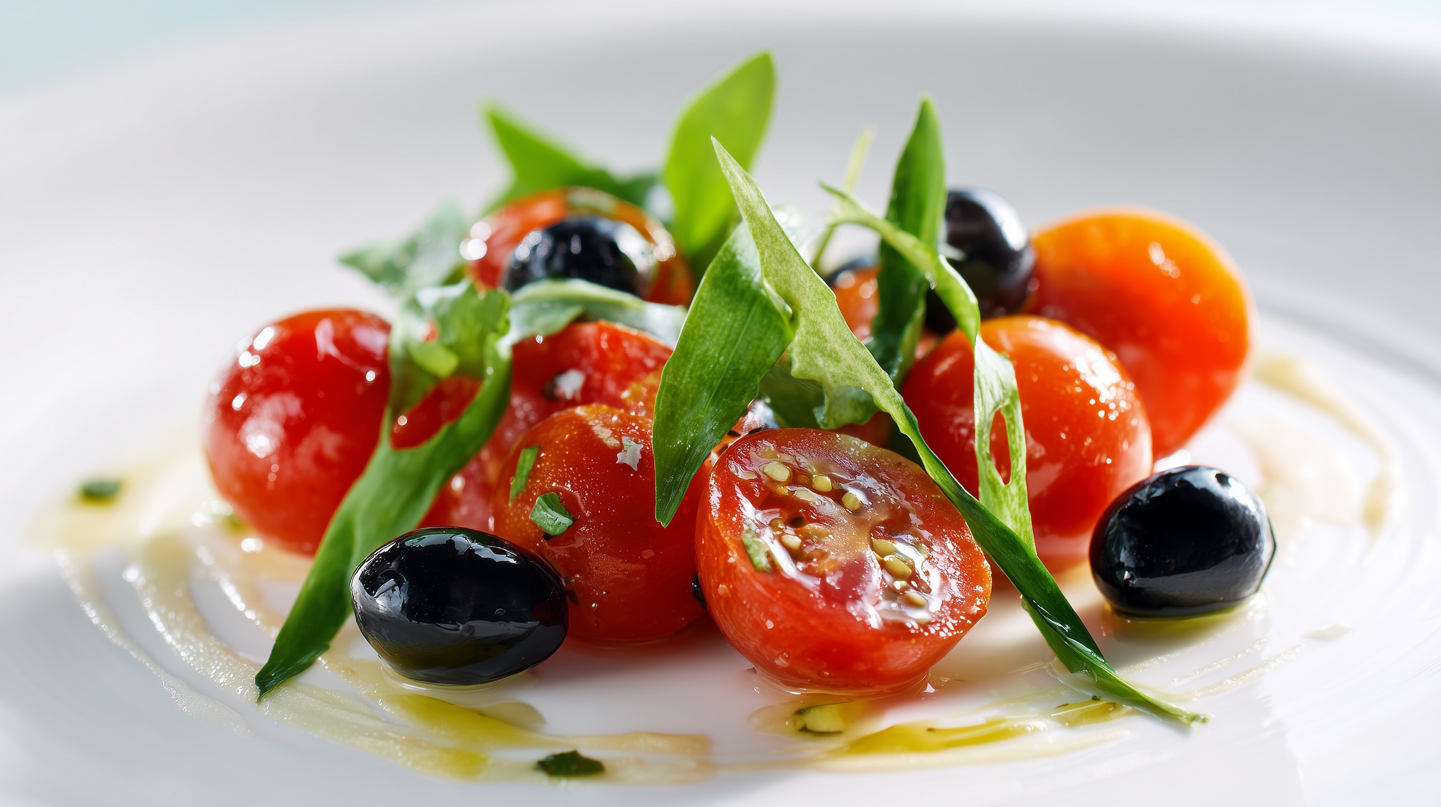 Tomaten Bärlauch Salat mit Oliven auf weißem Teller von Marco Verch unter Creative Commons 4.0