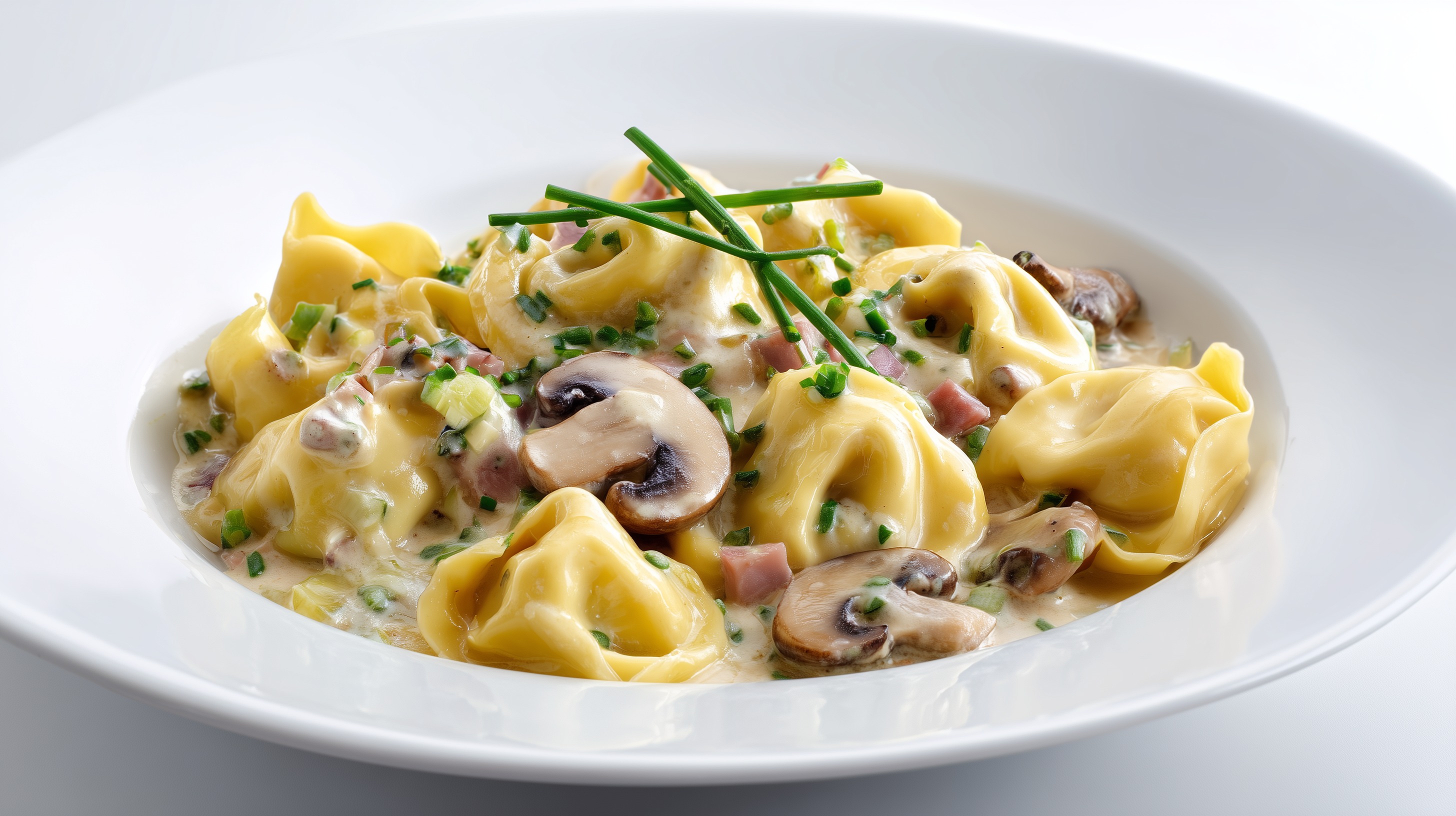 - Die abgetropften Cappelletti in die Sauce geben und alles vorsichtig vermengen, sodass die Pasta gleichmäßig mit der Sauce überzogen ist.