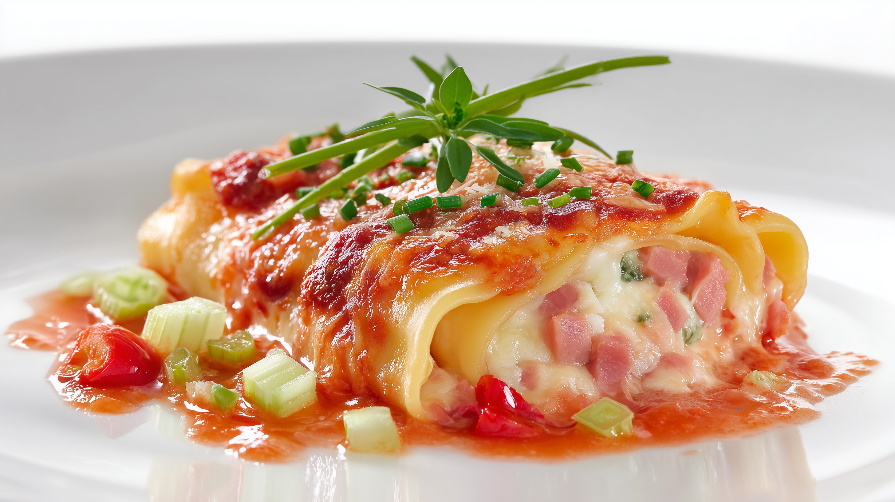 - Den Auflauf im vorgeheizten Ofen ca. 35–40 Minuten backen, bis die Cannelloni gar sind und der Käse goldbraun überbacken ist.