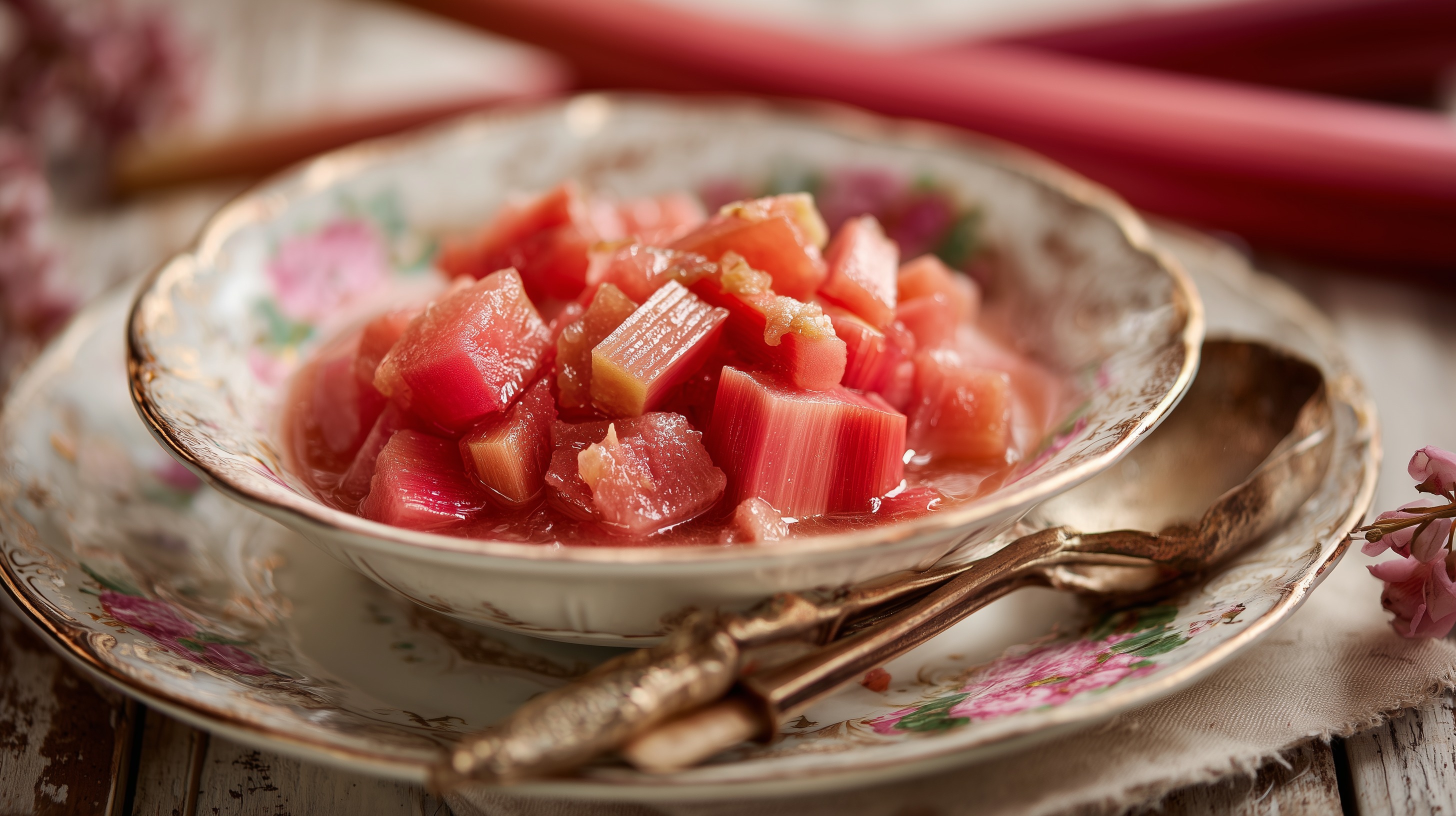 Rhabarberkompott nach Uromas Art in Porzellanschale von Marco Verch unter Creative Commons 4.0