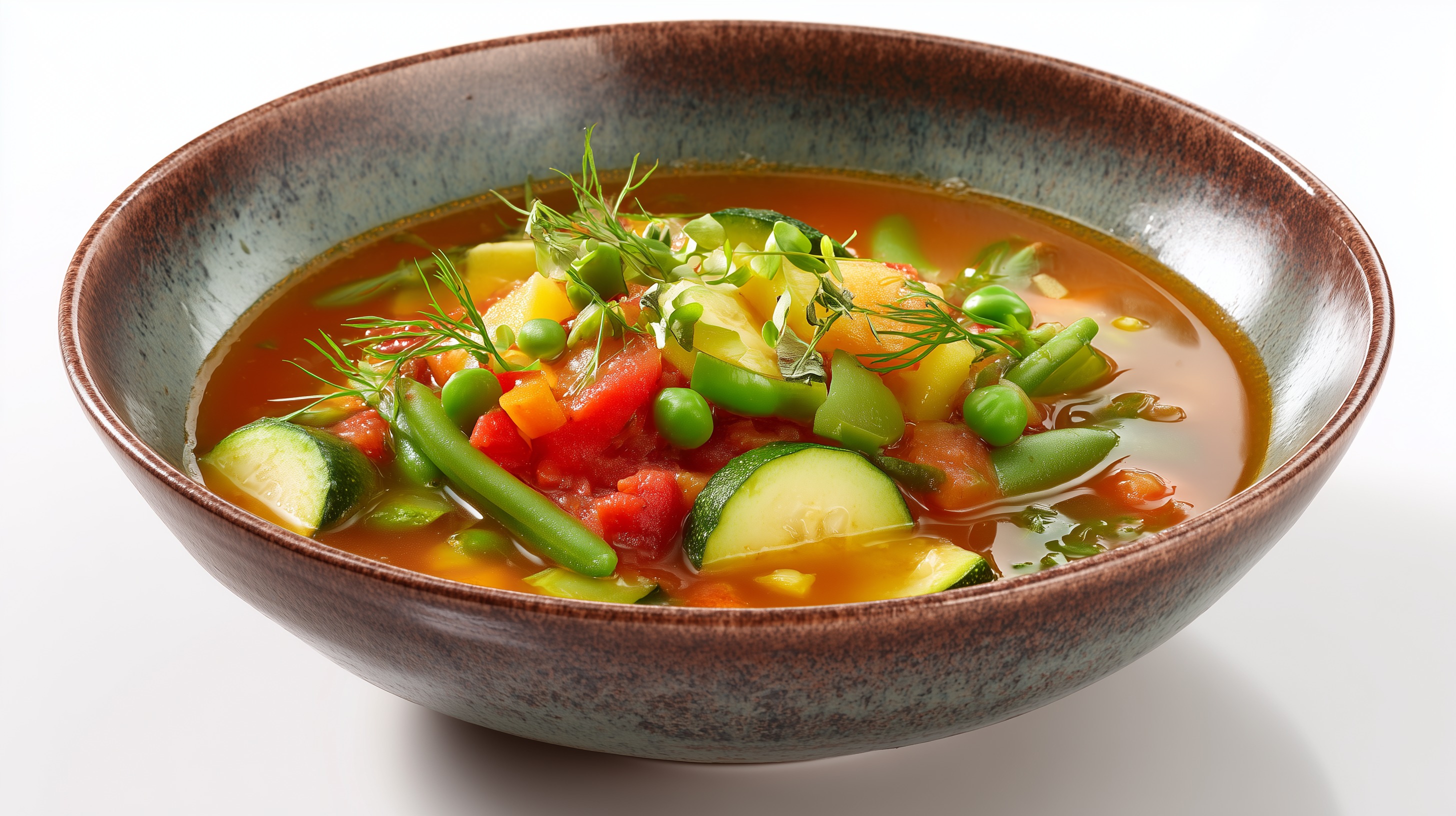 Tipp: Für eine noch sättigendere Variante können Sie 80 g kleine Pasta (z. B. Ditalini) oder eine Dose weiße Bohnen in den letzten 10 Minuten mitkochen. Die Minestrone schmeckt am nächsten Tag aufgewärmt sogar noch intensiver.