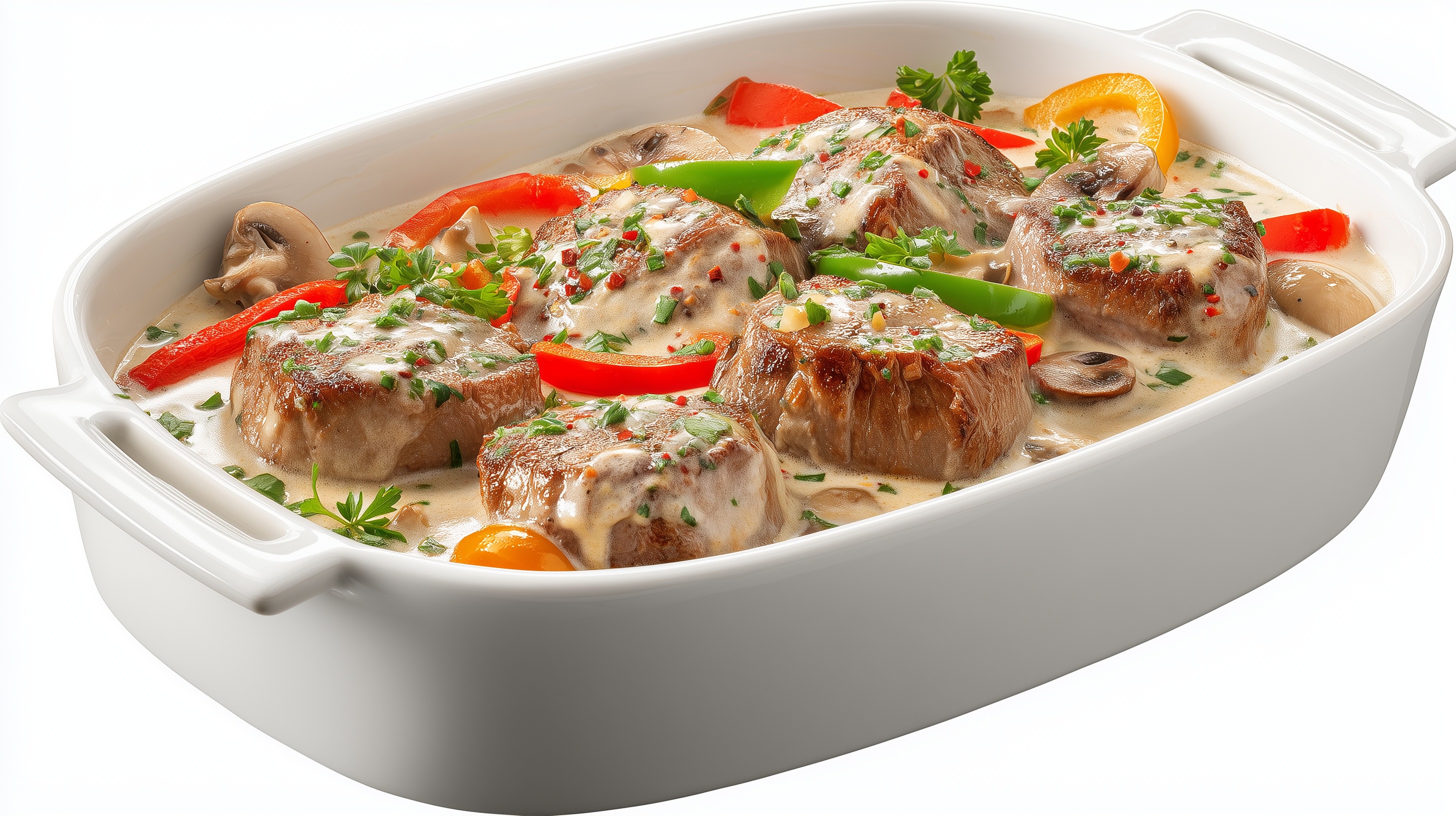 - Den Filettopf mit frisch gehackter Petersilie bestreuen und direkt in der Pfanne oder in einer vorgewärmten Servierschale servieren. Als Beilage passen Bandnudeln, Spätzle oder Baguette hervorragend.