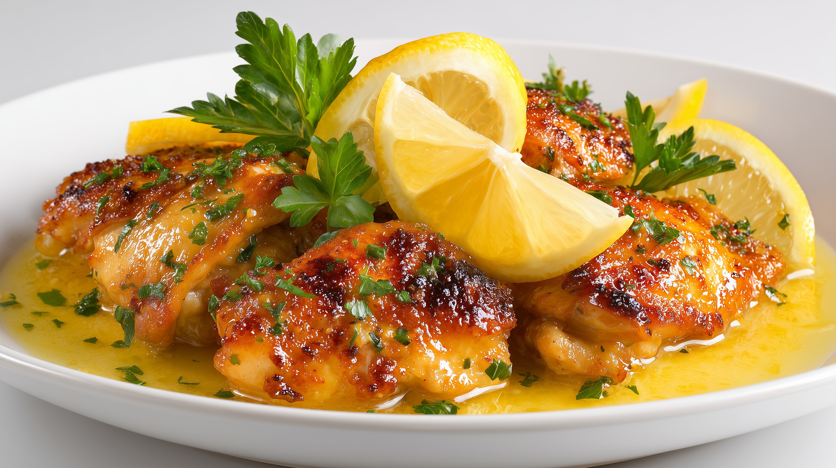 Tipp: Als Beilage passen Baguette, Cremepüree oder gedünsteter Reis hervorragend, um die aromatische Zitronensoße aufzunehmen. Wer es noch intensiver mag, kann die Hähnchenschenkel vor dem Braten 1–2 Stunden in einer Marinade aus Zitronensaft, Olivenöl, Knoblauch und Kräutern einlegen.