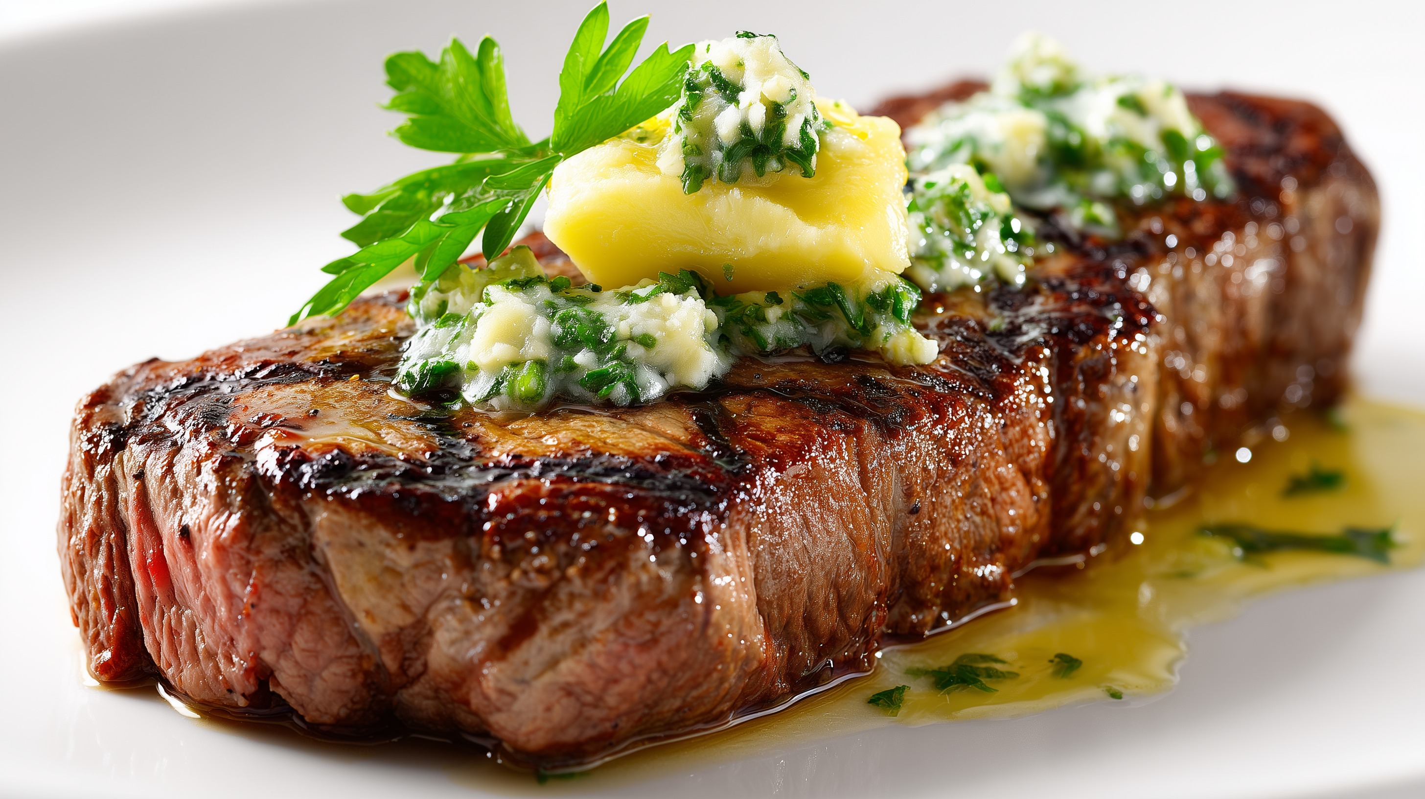 - Anrichten: Die Rinderfilet-Medaillons auf vorgewärmten Tellern anrichten. Von der gekühlten Knoblauchbutter je 1–2 Scheiben auf das heiße Fleisch legen, sodass sie leicht zerlaufen. Mit frischer Petersilie garnieren und sofort servieren.