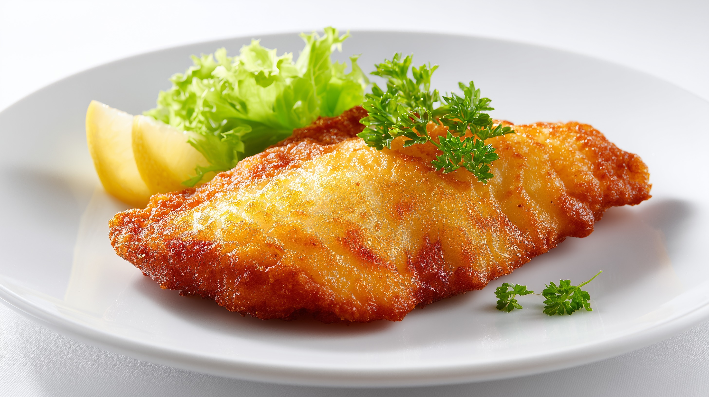 - Rotbarsch im Bierteig auf Tellern anrichten, mit frischer Petersilie garnieren und mit Zitronenspalten sowie Blattsalat servieren.