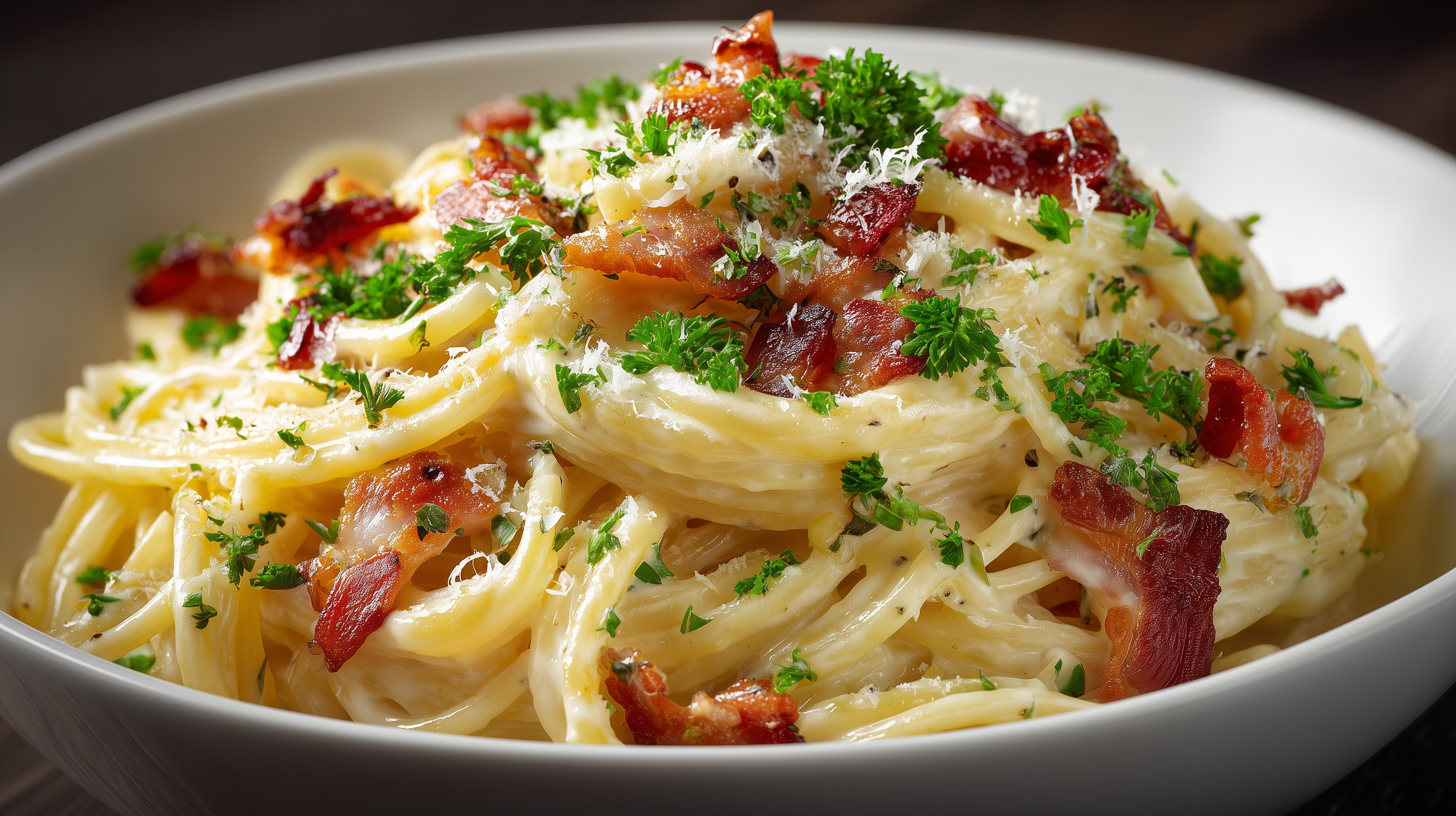 Tipp: Damit die Sauce schön cremig wird und nicht gerinnt, ist es wichtig, die Pfanne vom Herd zu nehmen, bevor die Ei-Sahne-Mischung hinzugegeben wird. Die Resthitze der Pasta reicht vollkommen aus, um die Sauce perfekt zu binden. Wer es noch würziger mag, kann zusätzlich etwas frisch geriebenen Pecorino Romano verwenden.