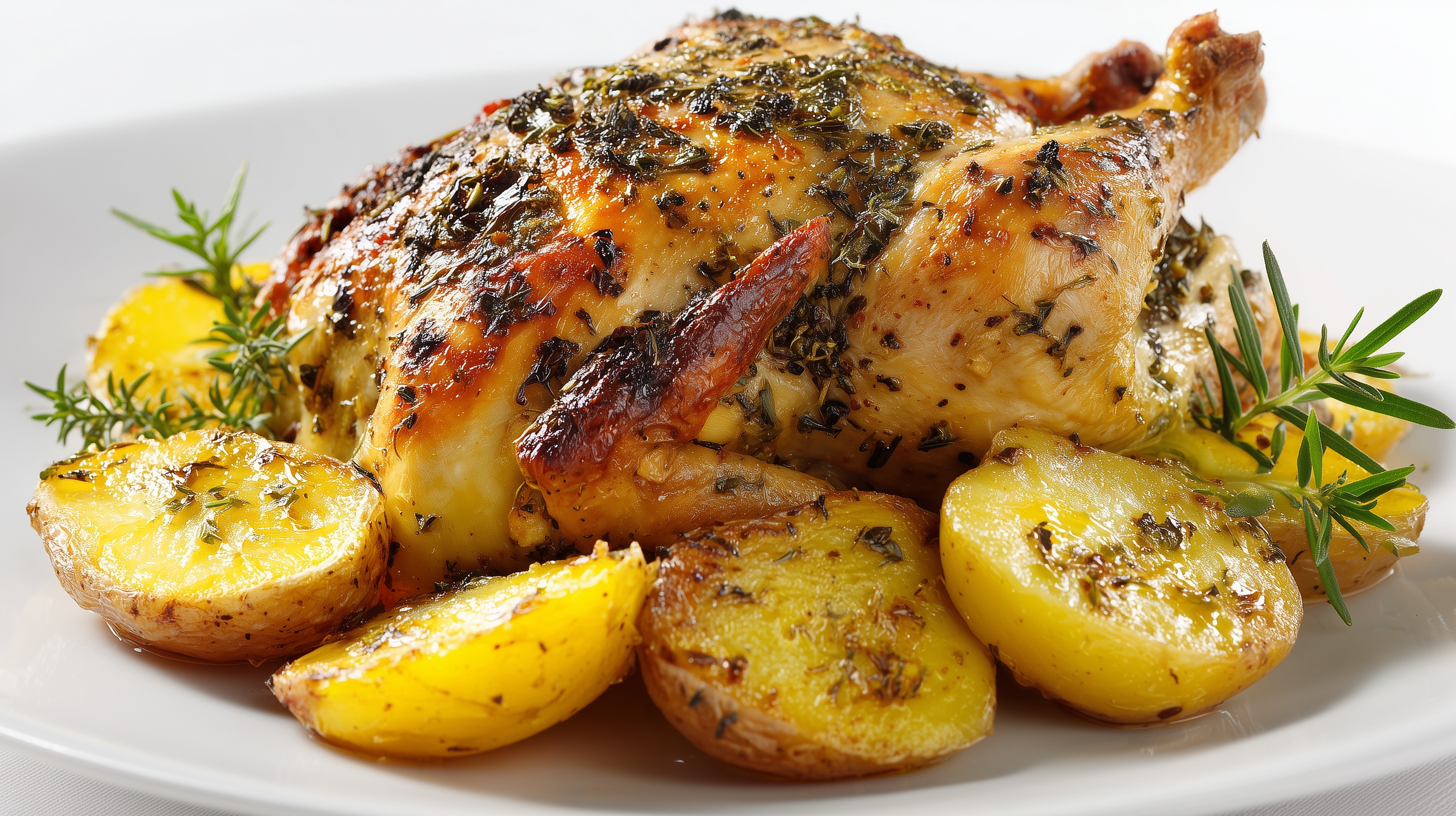 - Die Alufolie entfernen, das Hähnchen und die Kartoffeln wenden und weitere 35–40 Minuten offen backen, bis das Hähnchen goldbraun und die Kartoffeln weich und leicht knusprig sind.