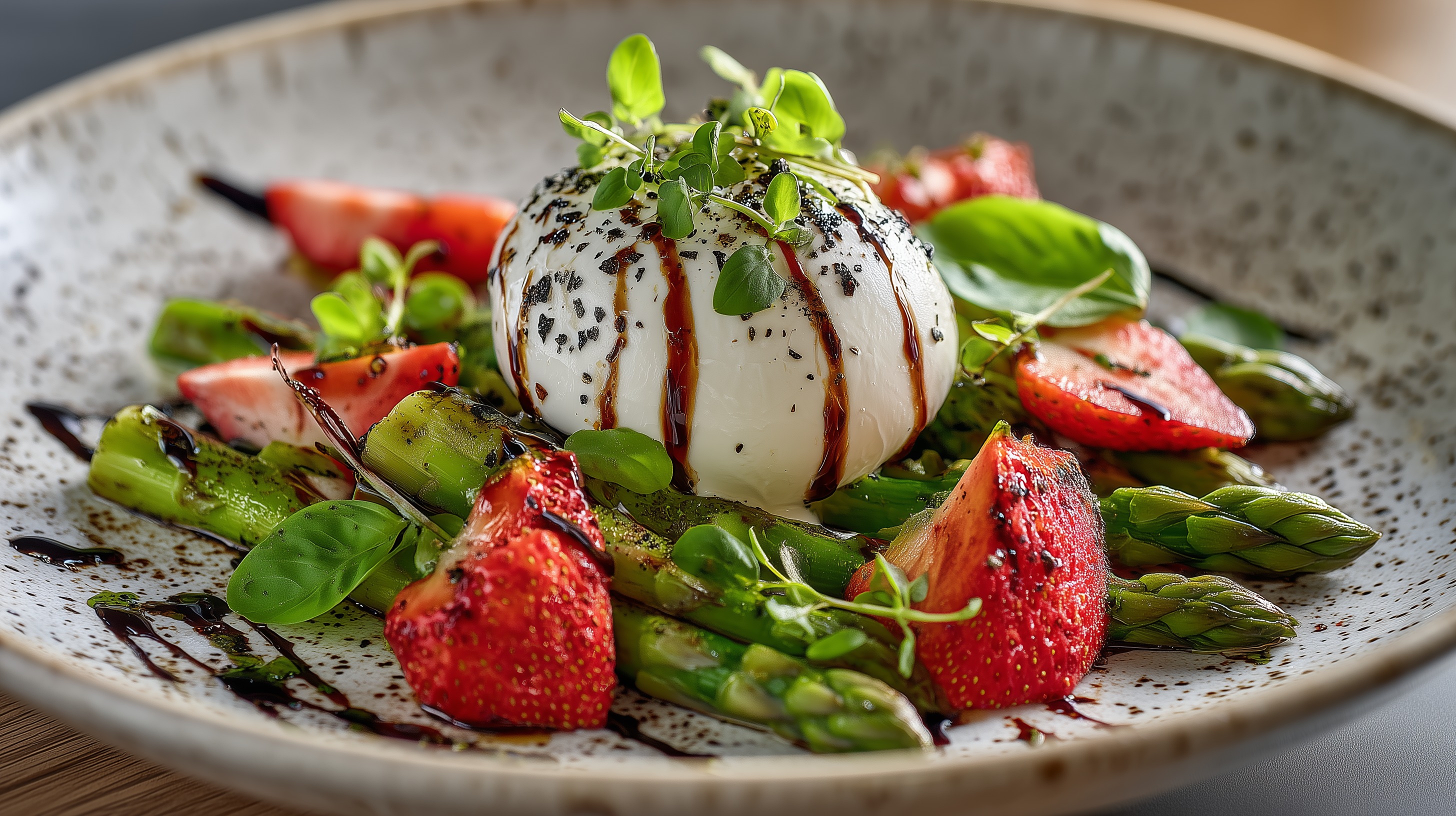 Tipp: Damit die Burrata ihr cremiges Inneres optimal entfaltet, sollte sie unbedingt Zimmertemperatur haben – nehmen Sie sie daher mindestens 30 Minuten vor dem Servieren aus dem Kühlschrank. Für eine intensivere Süße können die Erdbeeren auch kurz in einer heißen Pfanne mit etwas Honig karamellisiert werden.