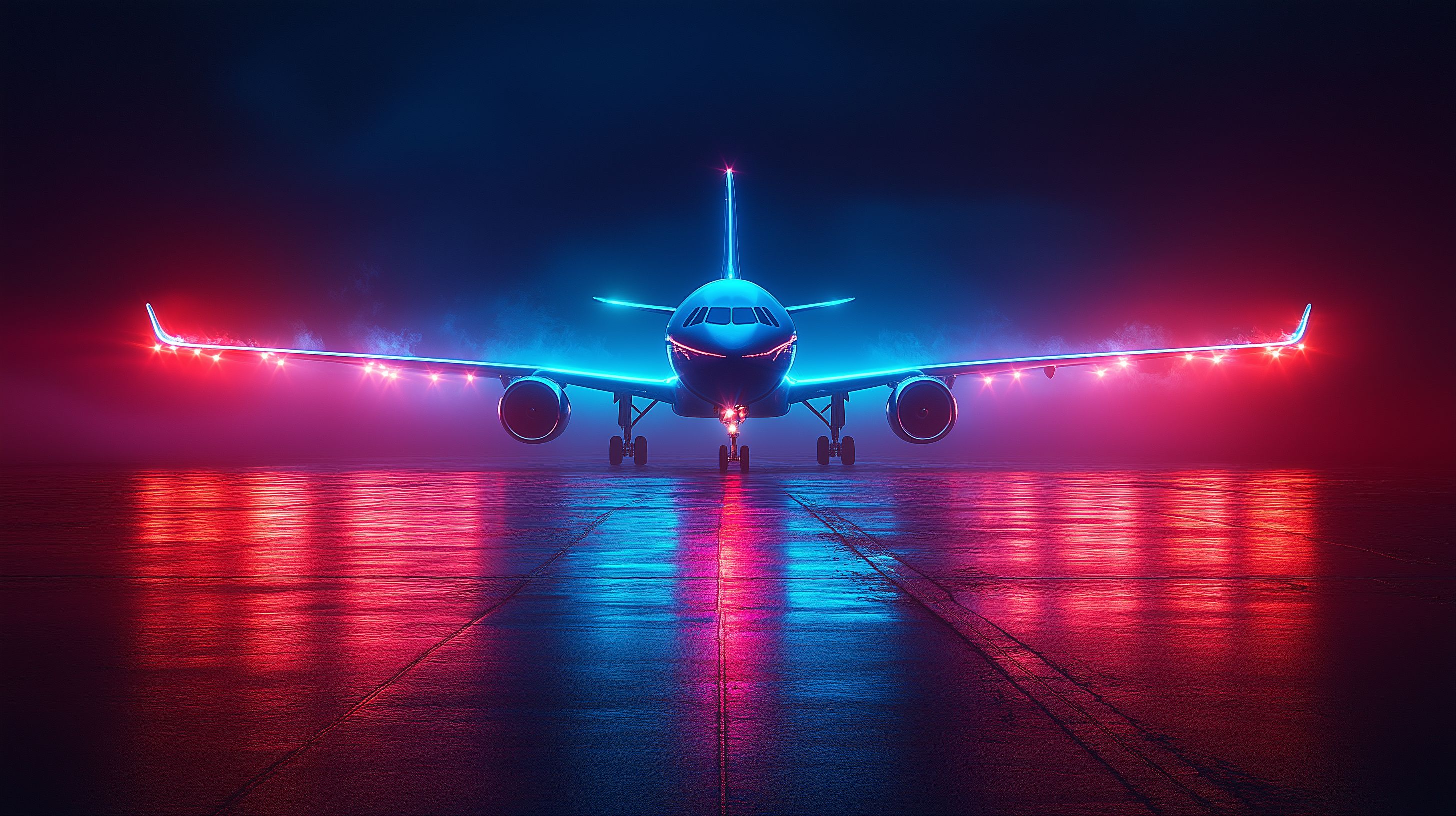 Dieses beeindruckende Bild zeigt ein beleuchtetes Flugzeug auf einer nächtlichen Landebahn. Die Maschine ist in einem kräftigen Blauton beleuchtet, der sich in der spiegelglatten Oberfläche der Landebahn widerspiegelt. Rote Lichter säumen die Flügel und den Rumpf, die dem Bild eine sinnliche, fast mystische Atmosphäre verleihen. Die Komposition mit dem Flugzeug als dominantes Element im Zentrum und den Reflektionen auf der Landebahn erzeugt eine beeindruckende visuelle Wirkung. Dieses Stockfoto in hoher Auflösung eignet sich hervorragend für den Einsatz in Blogs, Newslettern, Social-Media-Posts oder Werbekampagnen rund um Themen wie Luftfahrt, Reise, Technologie oder stimmungsvolle Nachtaufnahmen. Es steht unter einer Creative-Commons-Lizenz zur kostenfreien Nutzung zur Verfügung.