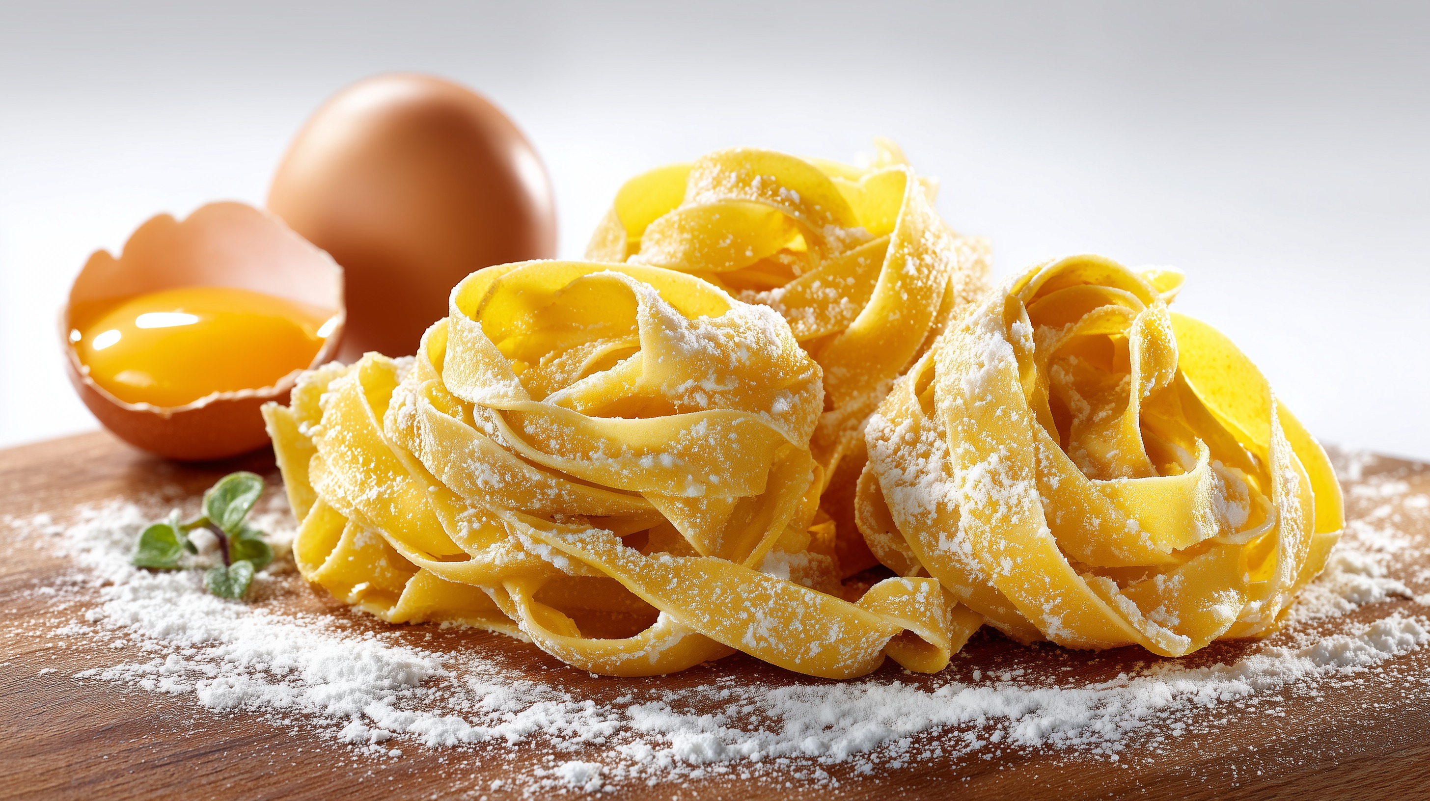 Tipp: Für besonders goldgelbe und aromatische Nudeln können Sie die Hälfte der ganzen Eier durch zusätzliche Eigelbe ersetzen. Je mehr Eigelb, desto reichhaltiger und seidiger wird der Teig. Die rohen Nudelnester lassen sich auch auf einem bemehlten Tablett für bis zu 24 Stunden im Kühlschrank aufbewahren oder eingefroren werden.