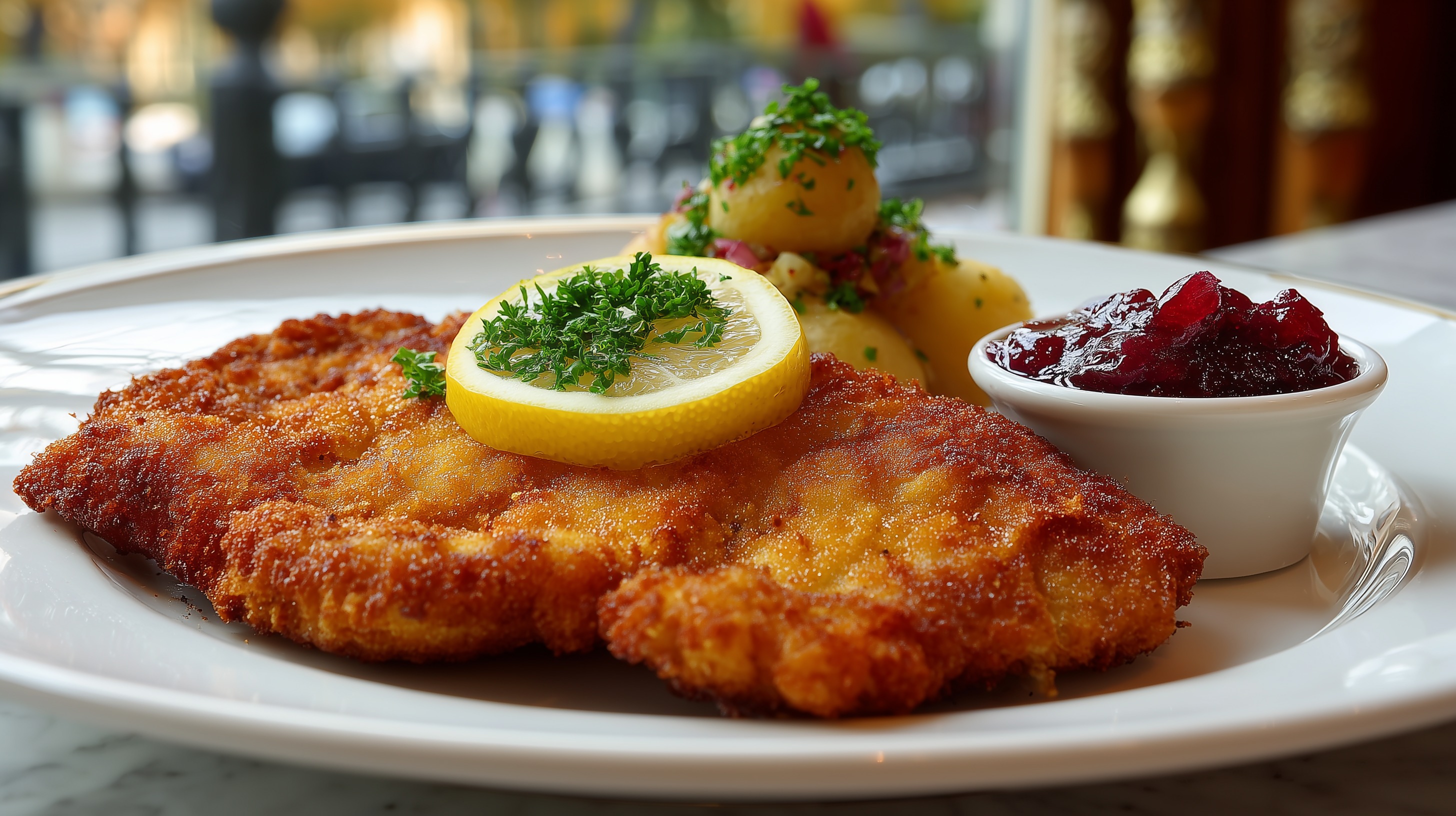 Tipp: Damit die Panade besonders knusprig und gleichmäßig wird, sollte das Fett in der Pfanne hoch genug stehen (ca. 1 cm), sodass das Schnitzel fast schwimmt – so souffliert die Panade optimal und wird nicht fettig. Frisch geriebene Semmelbrösel aus altem Weißbrot ergeben eine besonders zarte Kruste.