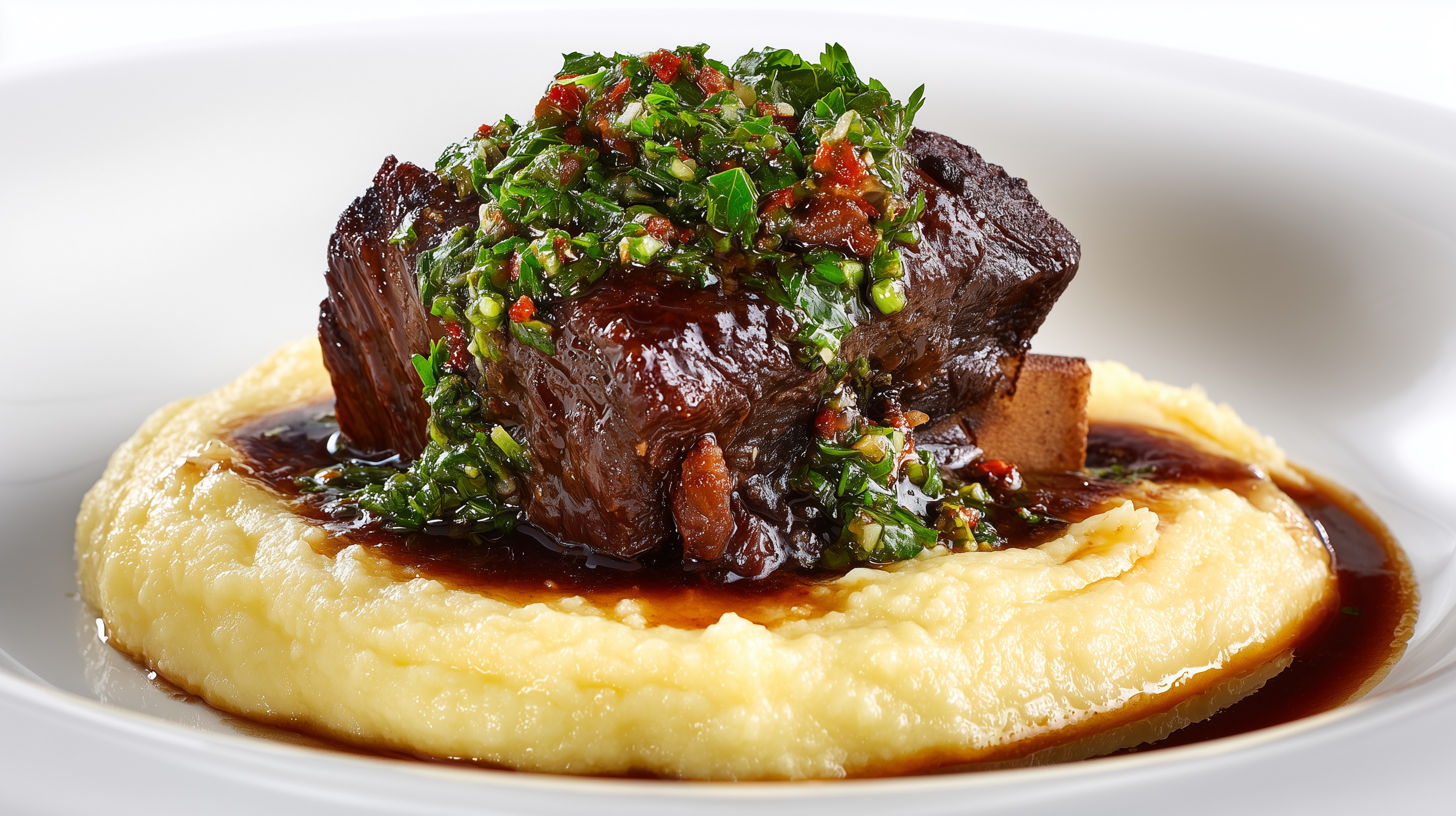 Tipp: Die Short Ribs schmecken am nächsten Tag noch besser – einfach in der Sauce im Kühlschrank aufbewahren und sanft wieder erwärmen. Die Gremolata immer frisch zubereiten und erst kurz vor dem Servieren aufbringen, damit die Aromen des Korianders voll zur Geltung kommen.