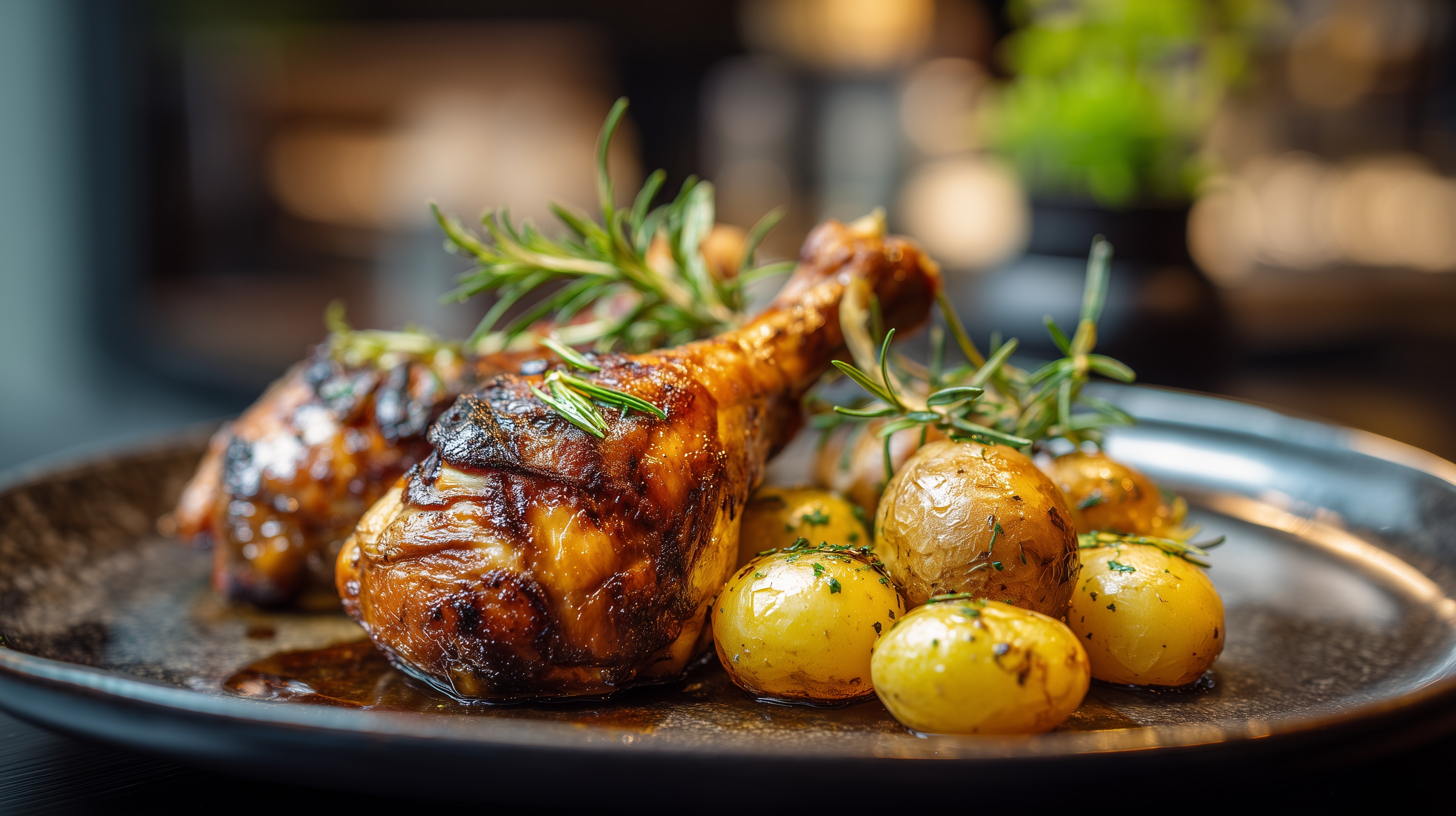 - In den letzten 5–10 Minuten den Grill zuschalten (220 °C), damit die Haut besonders knusprig und goldbraun wird.
