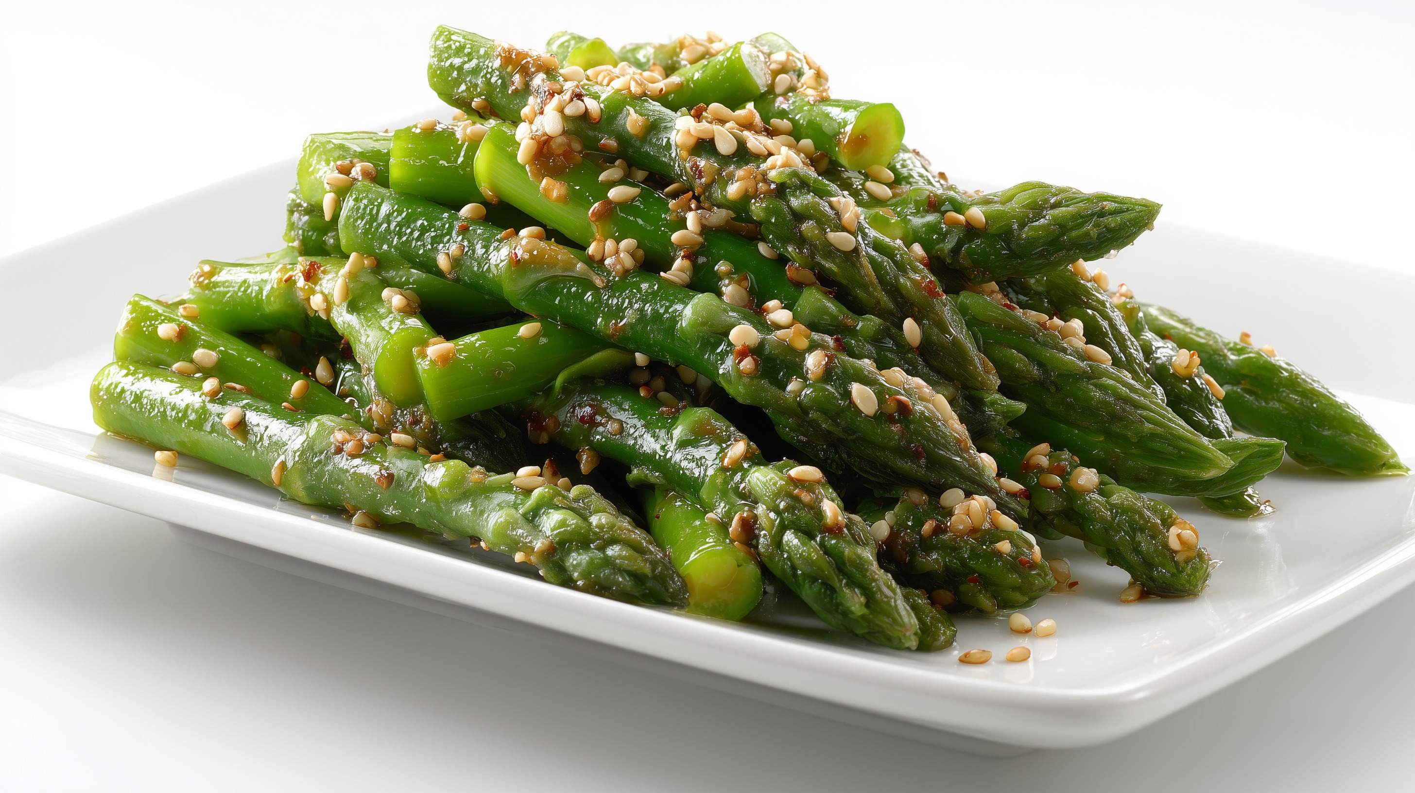- Eine große Pfanne oder einen Wok bei hoher Hitze erhitzen. Den abgetropften Spargel darin 1–2 Minuten kurz schwenken.