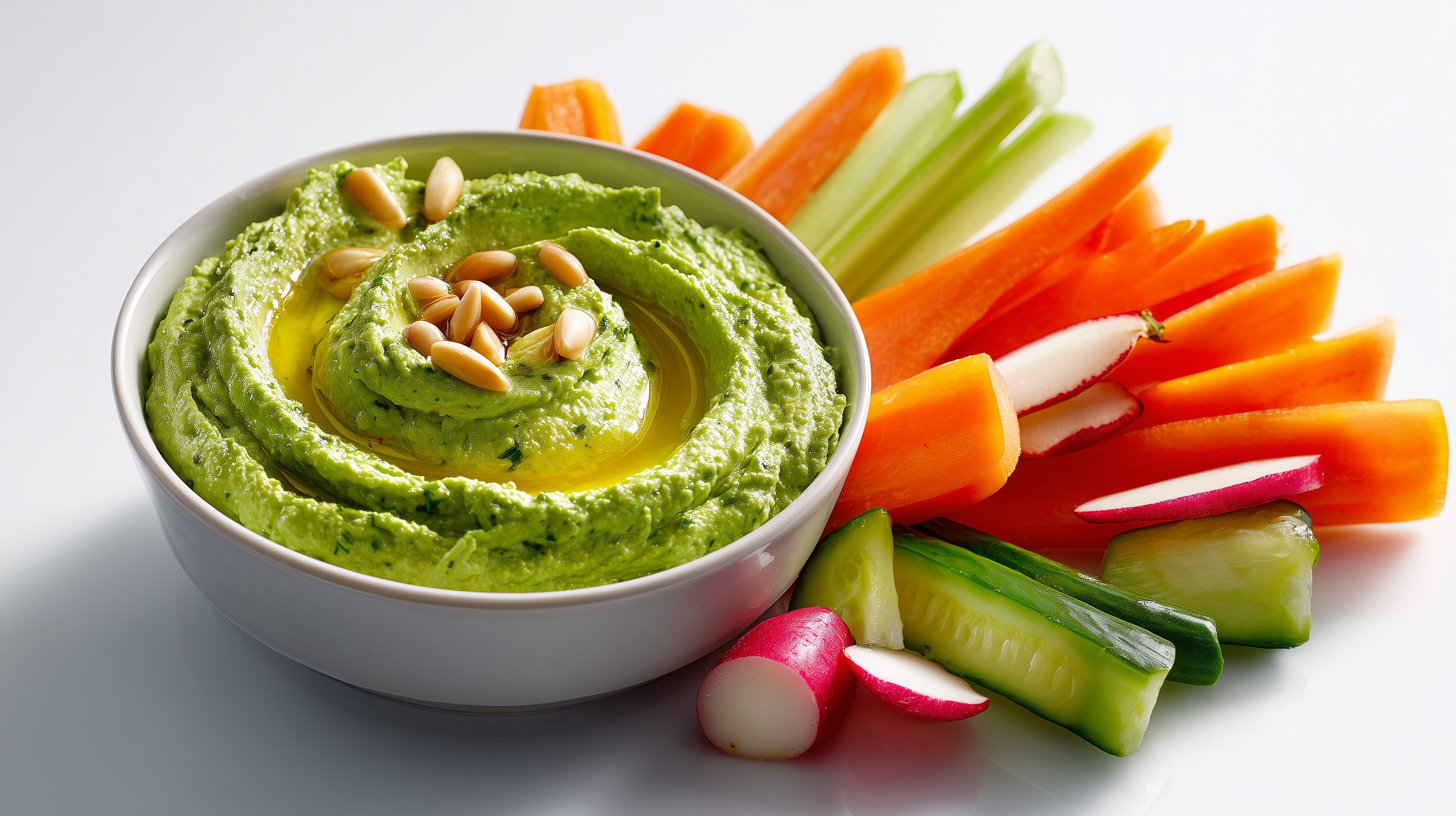 - Hummus zusammen mit den Crudités anrichten und sofort servieren.