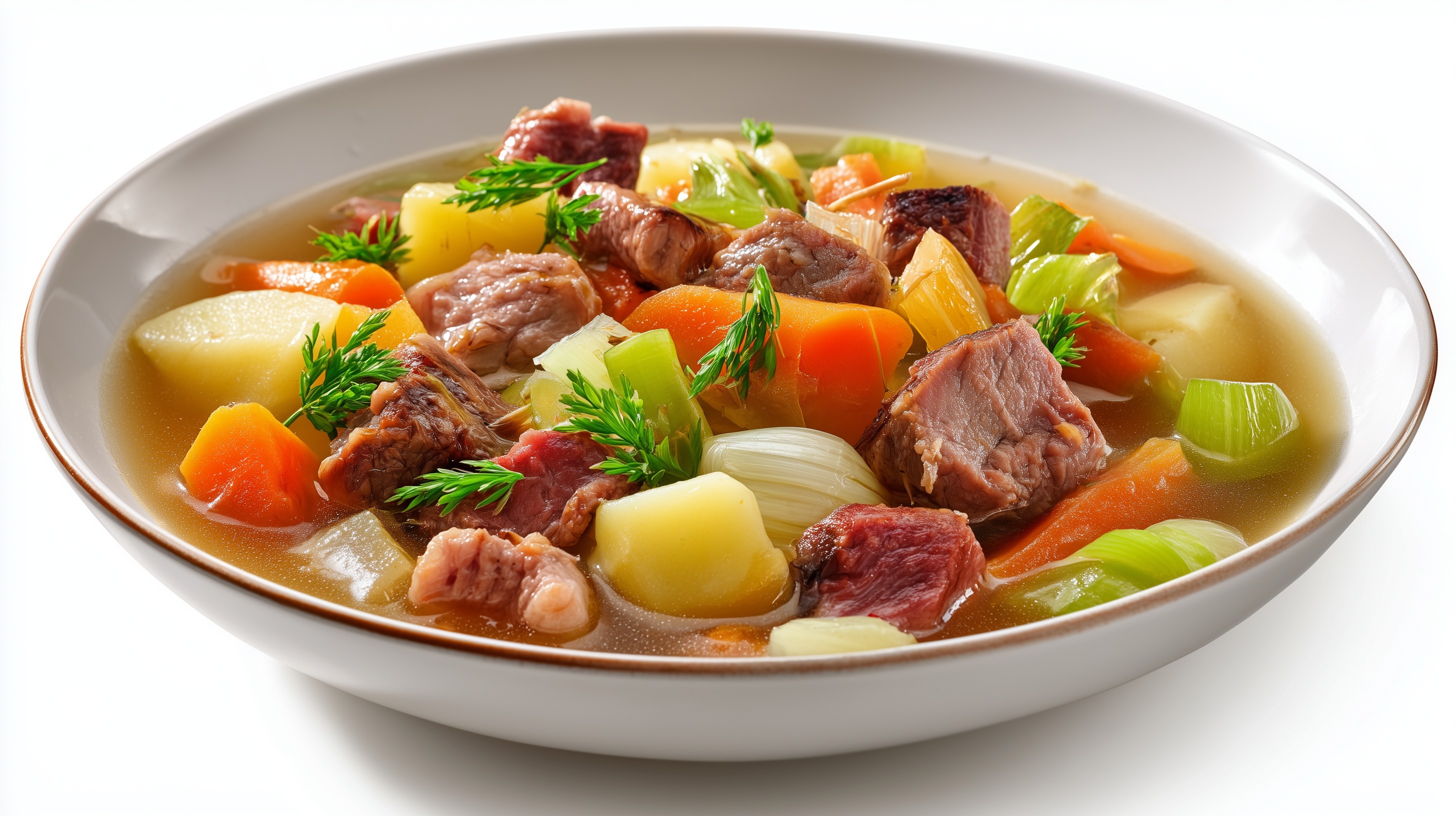 - Kartoffeln und Weißkohl in den Topf geben und alles weitere 25–30 Minuten köcheln lassen, bis das Fleisch zart und das Gemüse weich ist.