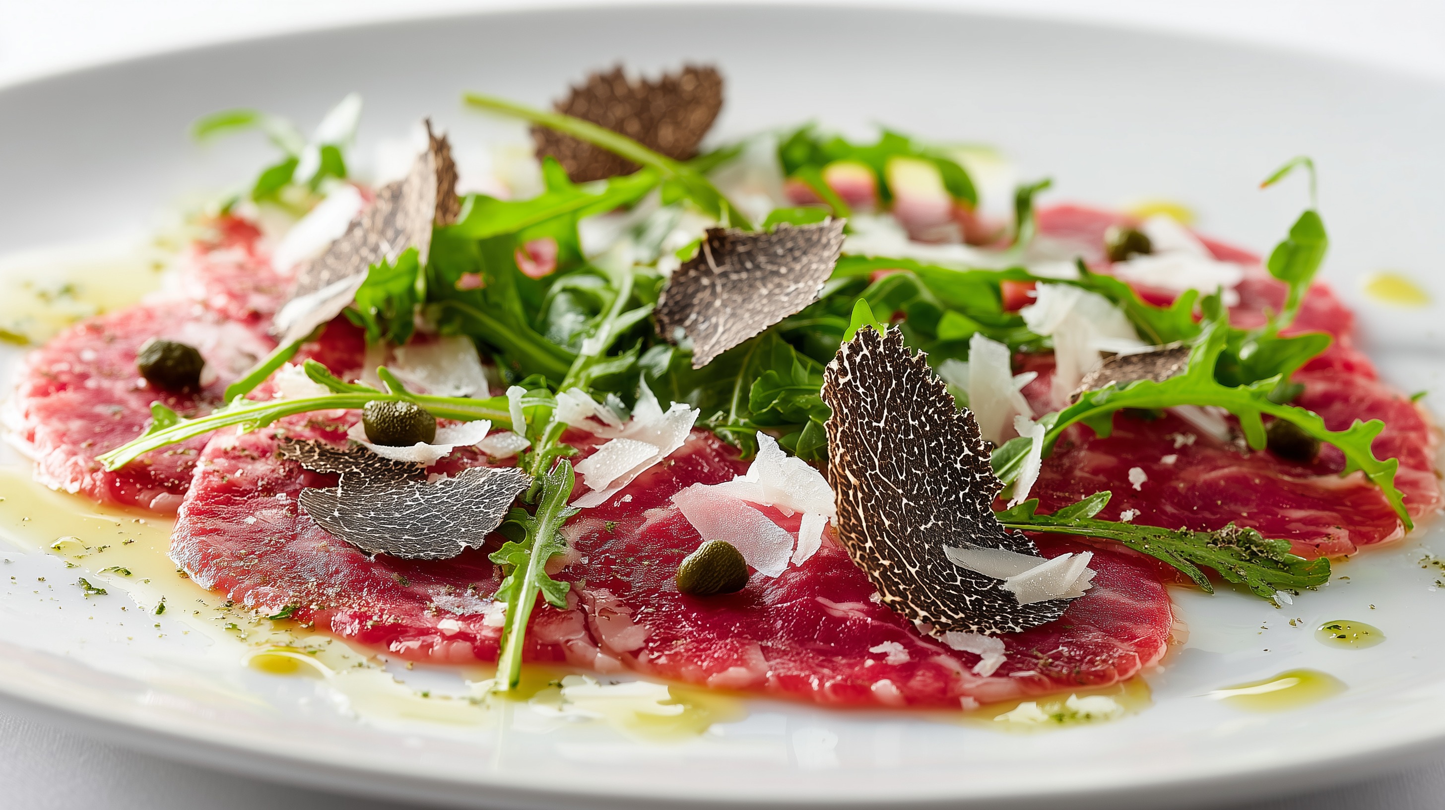 Tipp: Die Qualität des Fleisches ist bei diesem Gericht entscheidend – kaufen Sie das Wagyu-Filet unbedingt beim Vertrauensmetzger oder einem spezialisierten Händler. Da das Fleisch roh serviert wird, sollte es tagesfrisch und von höchster Qualität sein. Die Teller können vorab im Kühlschrank vorgekühlt werden, damit das Carpaccio länger kalt und frisch bleibt.