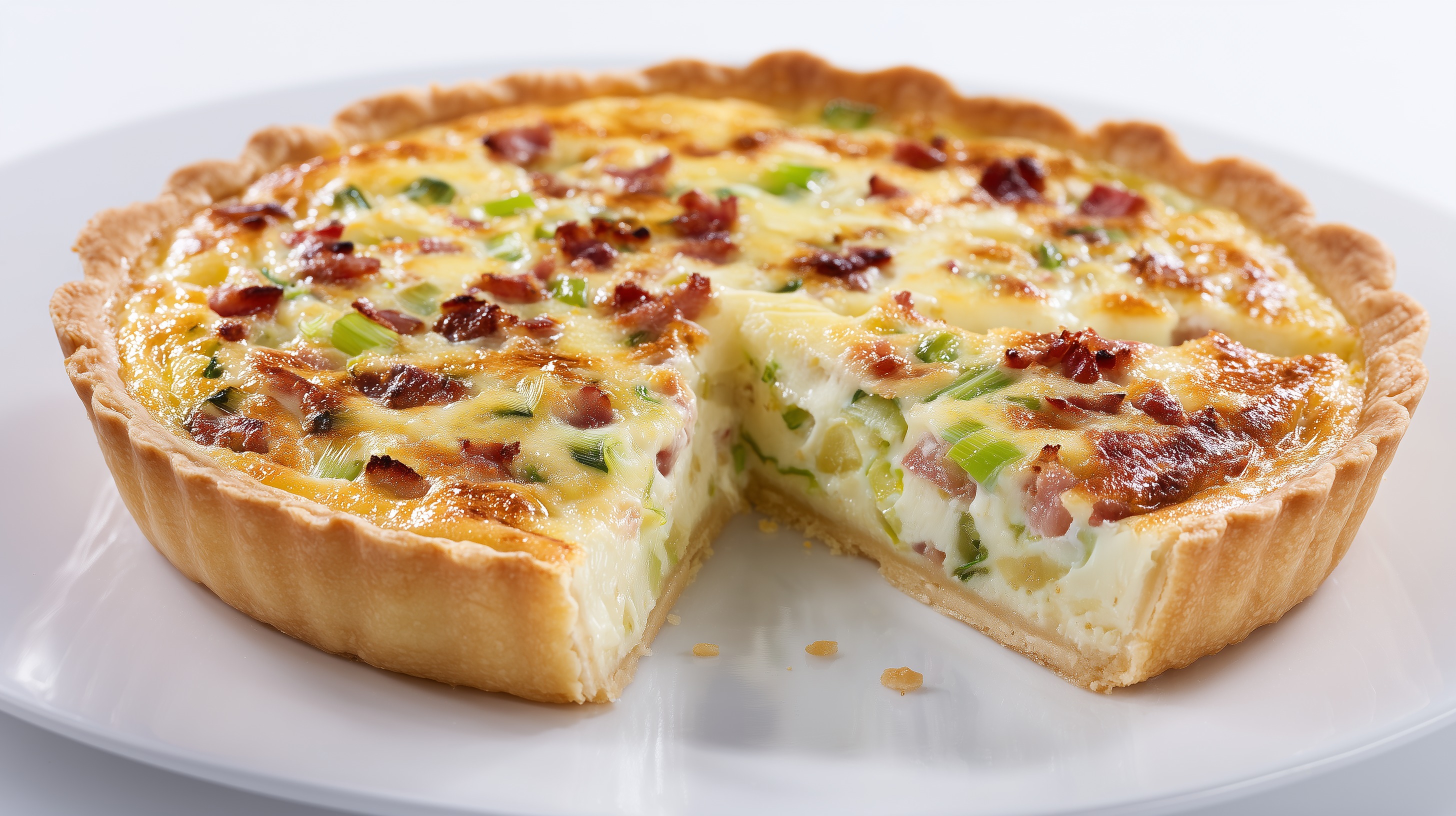 - Die Quiche aus dem Ofen nehmen und mindestens 10 Minuten ruhen lassen, bevor sie in Stücke geschnitten wird.