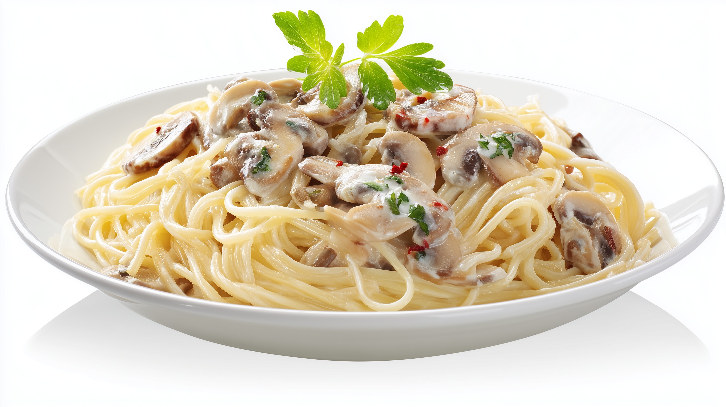 - Die Pasta auf vier Teller verteilen, mit frischer Petersilie bestreuen und sofort servieren.