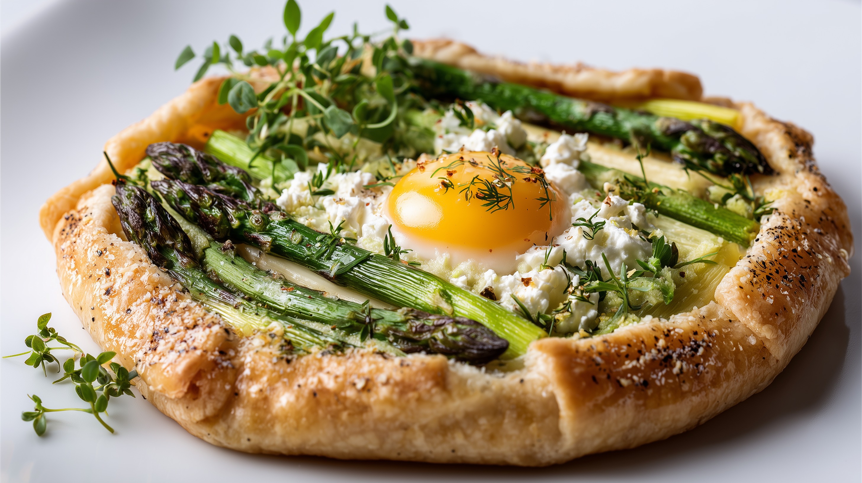 - Anrichten: Die Galette aus dem Ofen nehmen, mit frischer Kresse oder Microgreens und zusätzlichen Thymianblättchen garnieren. In 4 Stücke schneiden und sofort servieren.