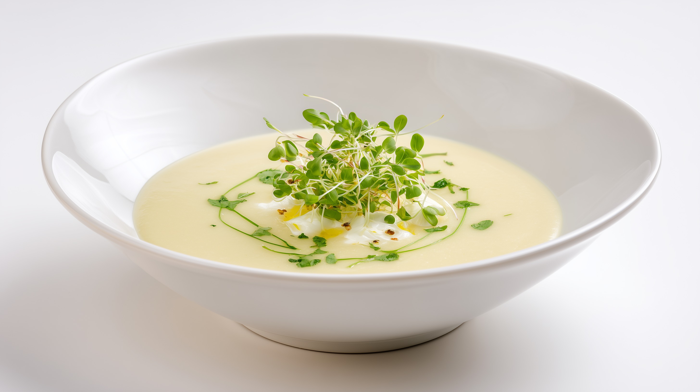 Tipp: Für eine leichtere Variante die Sahne durch Kokosmilch ersetzen – das verleiht der Suppe eine feine exotische Note, die wunderbar zum milden Blumenkohl passt. Die Microgreens erst unmittelbar vor dem Servieren auflegen, damit sie frisch und knackig bleiben.