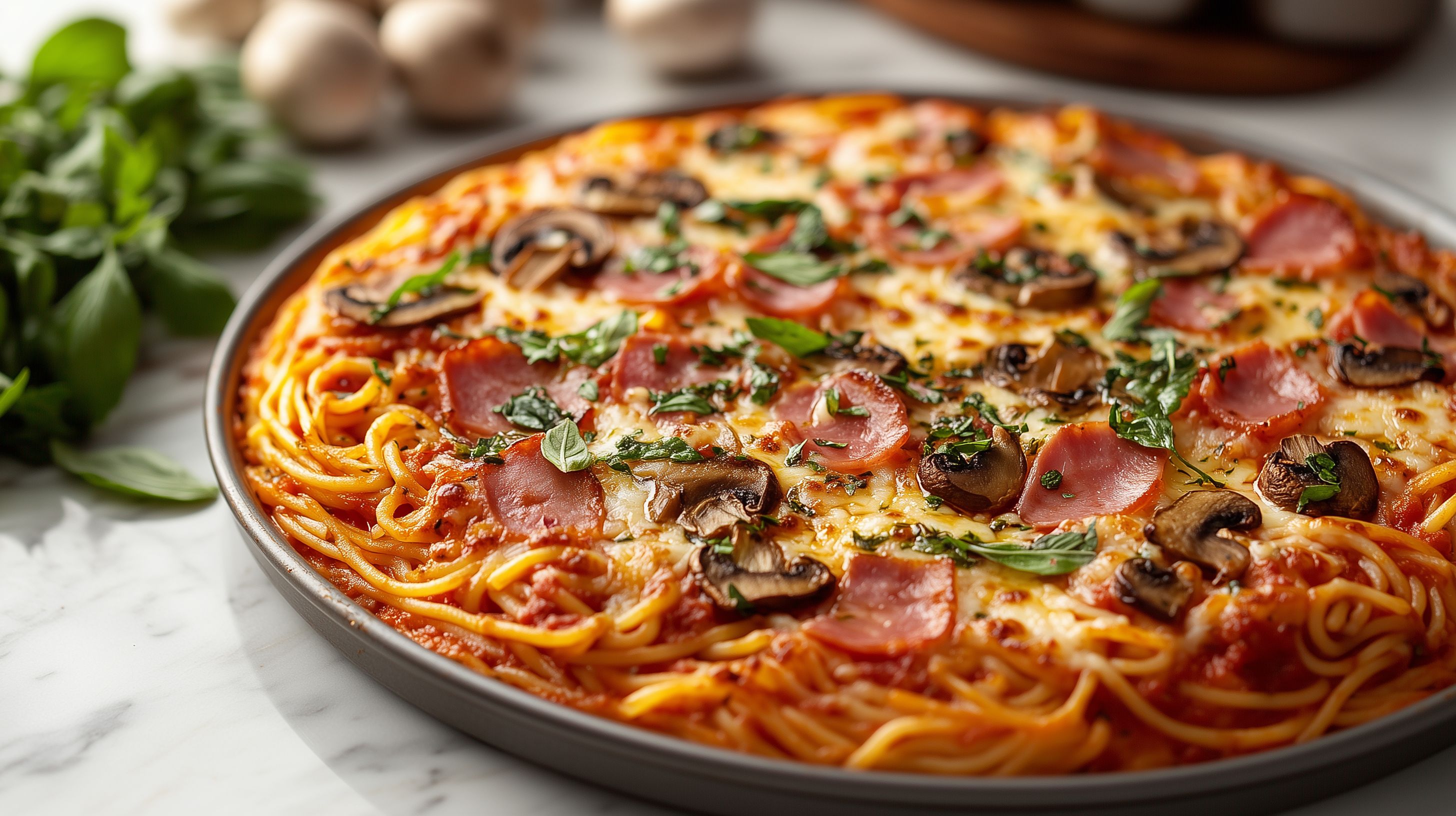Dieses Foto zeigt einen appetitlich aussehenden Nudelauflauf mit Schinken und Pilzen. Der Teller ist vor einem hellen Hintergrund platziert, wodurch die kräftigen Farben des Gerichts besonders gut zur Geltung kommen. Die Nudeln sind in einer würzigen Tomatensauce eingebettet und mit Käse überbacken, was eine leckere Kombination ergibt. Frische Kräuter runden das Gericht geschmacklich ab. Das Foto eignet sich hervorragend als kostenloses Stockfoto für Rezeptbeiträge, Foodblogs, Werbung für italienische Restaurants oder als Illustrationsmaterial in diversen Publikationen. Die hochauflösende Qualität des Bildes garantiert eine hervorragende Darstellung auf verschiedenen digitalen Kanälen.