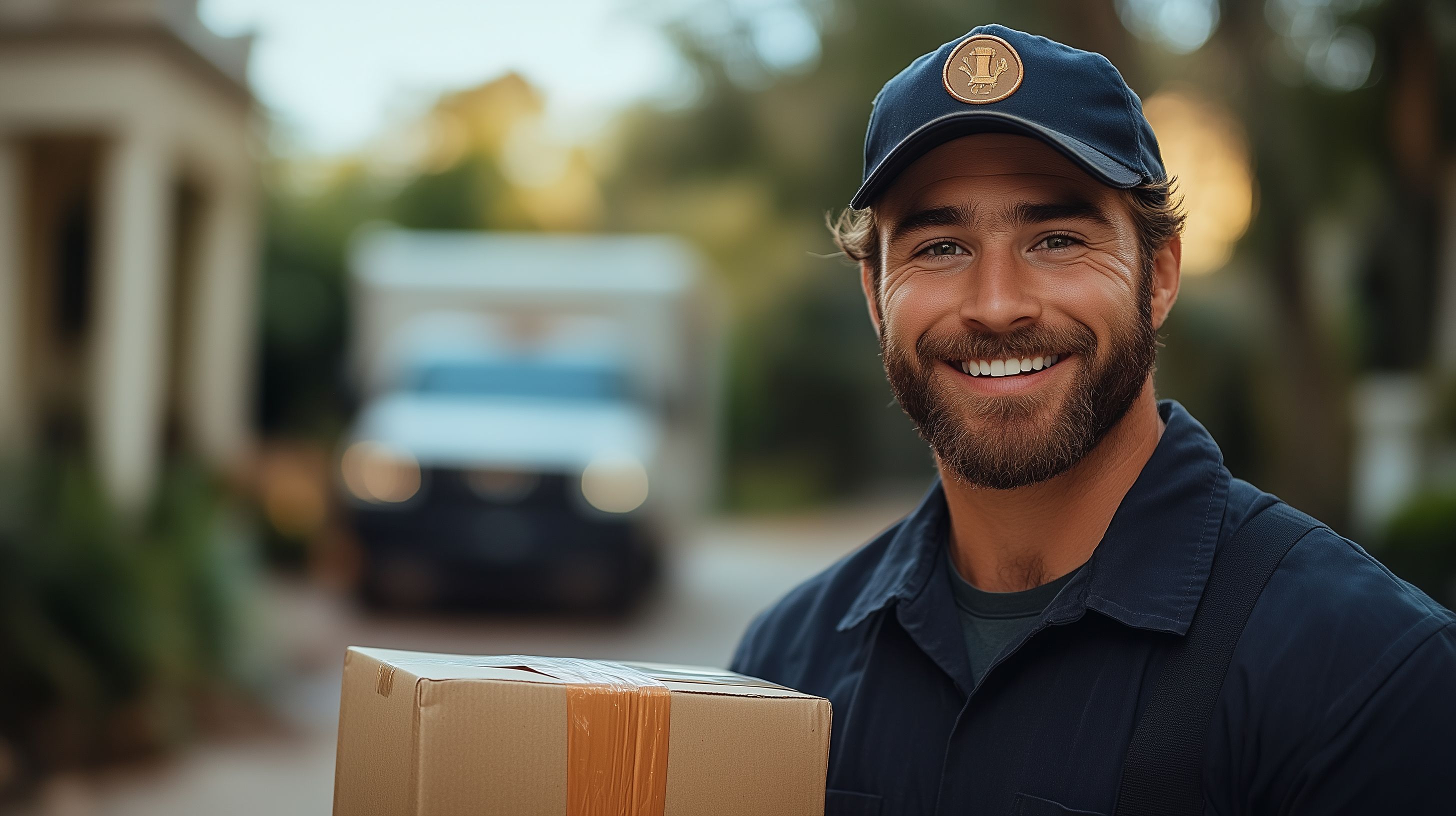 Dieses Foto zeigt einen fröhlichen Paketzusteller, der eine Lieferung überbringt. Mit seiner freundlichen Ausstrahlung und seinem Lächeln strahlt er Zuvorkommenheit und Kundenzufriedenheit aus. Er trägt die klassische Uniform des Paketboten und hält einen Karton in den Händen. Die Aufnahme entstand im Freien, mit Blick auf einen Hintergrund aus Straßen und Gebäuden. Das Bild eignet sich perfekt für den Einsatz in Blogs, Newslettern, Social-Media-Beiträgen oder Werbekampagnen rund um die Themen Logistik, Dienstleistung oder Kundenzufriedenheit. Das hochauflösende und kostenlos nutzbare Stockfoto steht unter einer Creative-Commons-Lizenz zur Verfügung.