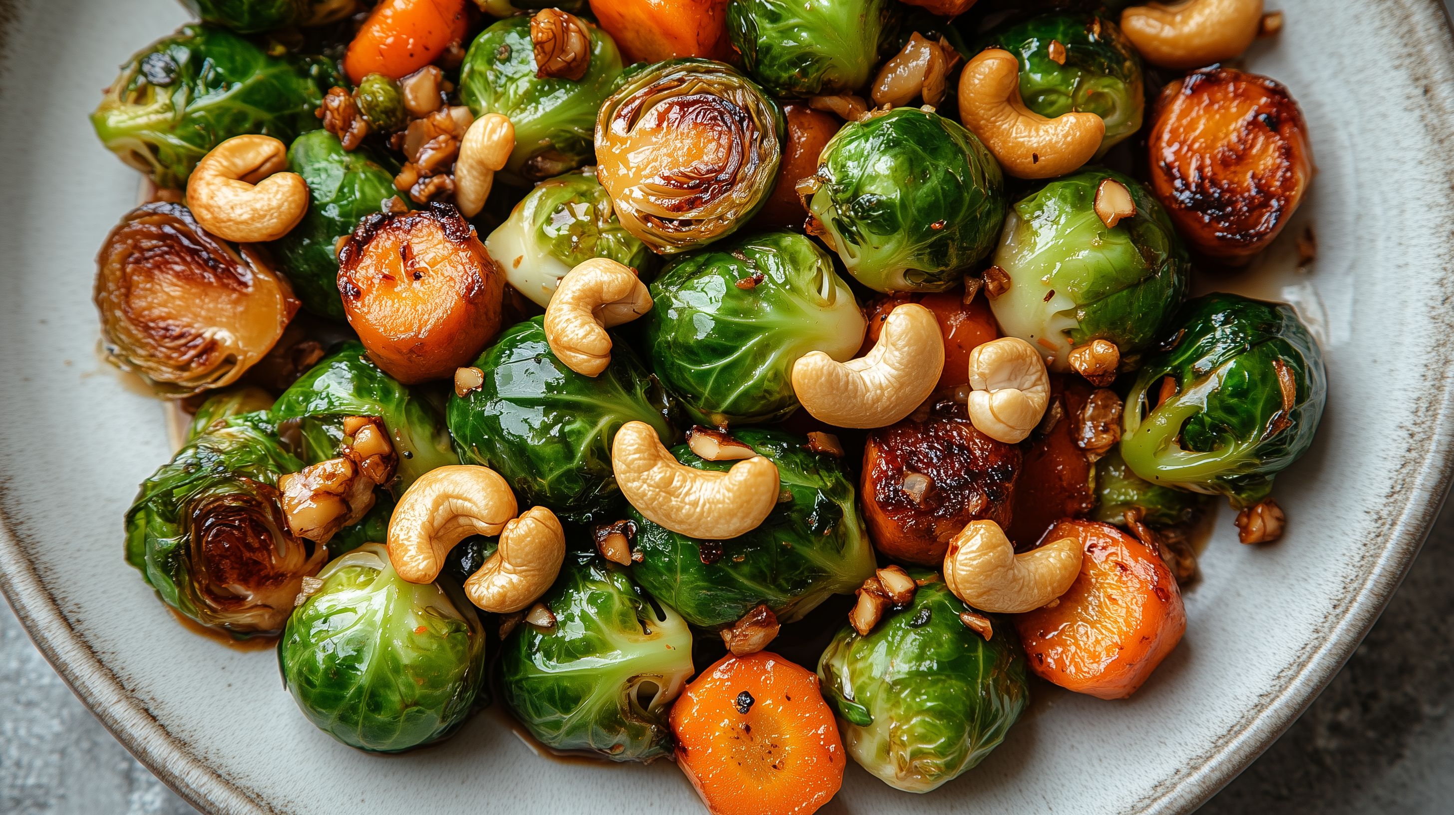 Dieses köstliche Foto zeigt eine appetitanregende Pfanne mit gebratenen Rosenkohl, karamellierten Karotten und knusprigen Cashewkernen. Die Zutaten sind farbenfroh und sehen sehr frisch und natürlich aus. Die Anordnung wirkt rustikal und authentisch, typisch für eine leckere, gesunde Mahlzeit. Dieses hochwertige Stockfoto eignet sich hervorragend für Blogs, Rezeptsammlungen, Social-Media-Beiträge und Werbematerialien rund um gesunde Ernährung und vegetarische Küche. Mit einer hohen Auflösung und unter einer Creative-Commons-Lizenz steht es Ihnen als kostenloses Bildmaterial zur Verfügung.