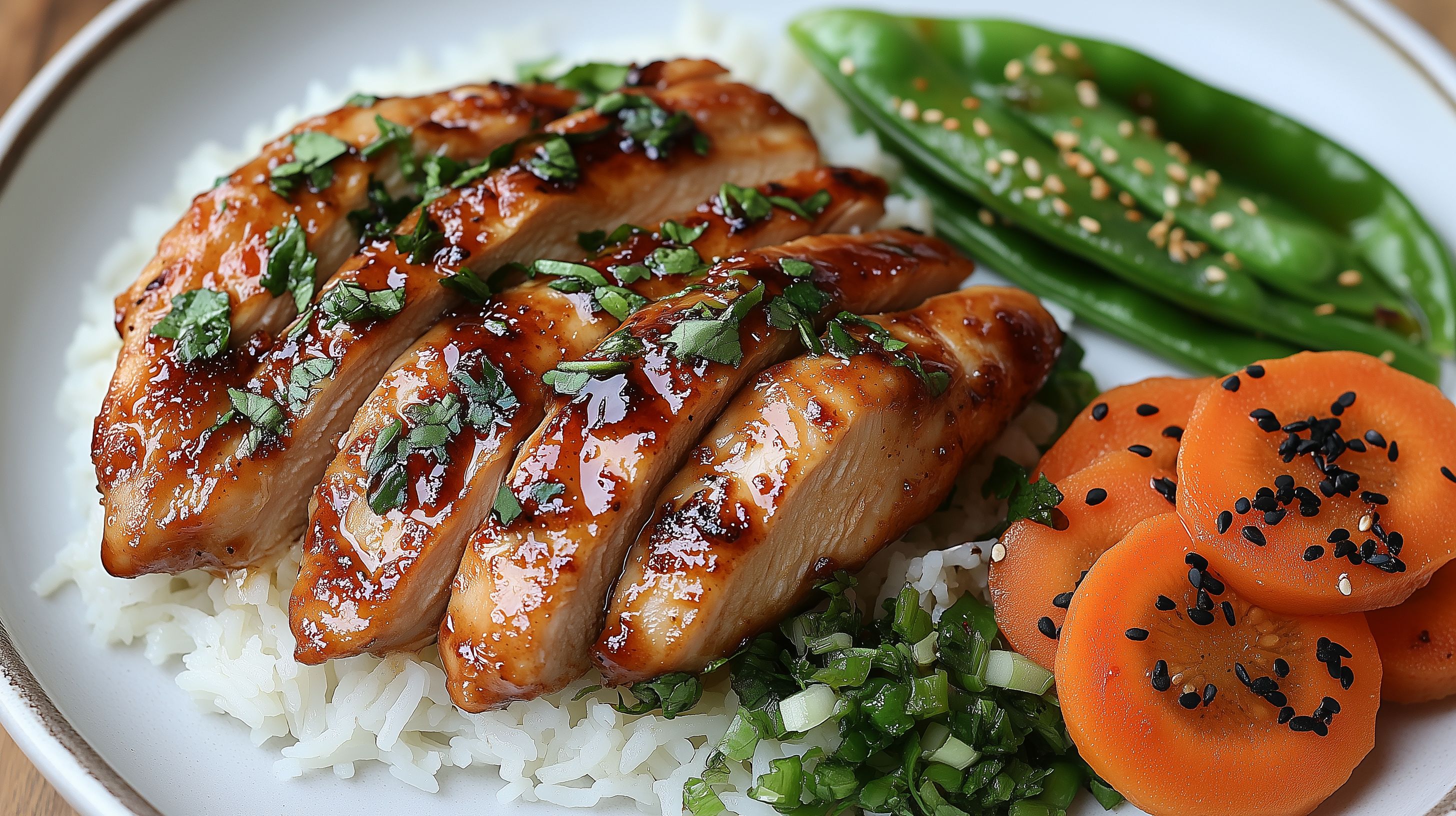Dieses köstliche Foto zeigt ein leckeres asiatisches Teriyaki-Hühnchengericht. Das saftige, mit Teriyaki-Sauce glasierte Hühnerfleisch ist auf einem Bett von weißem Reis angerichtet und mit frischen Bohnen und Karotten garniert. Die intensive Farbe und das appetitliche Aussehen des Gerichts machen es zu einem perfekten Motiv für Lebensmittel-, Kochen- oder Restaurantfotos. Dieses hochauflösende Stockfoto ist unter einer Creative-Commons-Lizenz verfügbar und kann daher kostenfrei für verschiedene Zwecke wie Blogs, Newsletter, Social-Media-Beiträge oder Werbung genutzt werden.