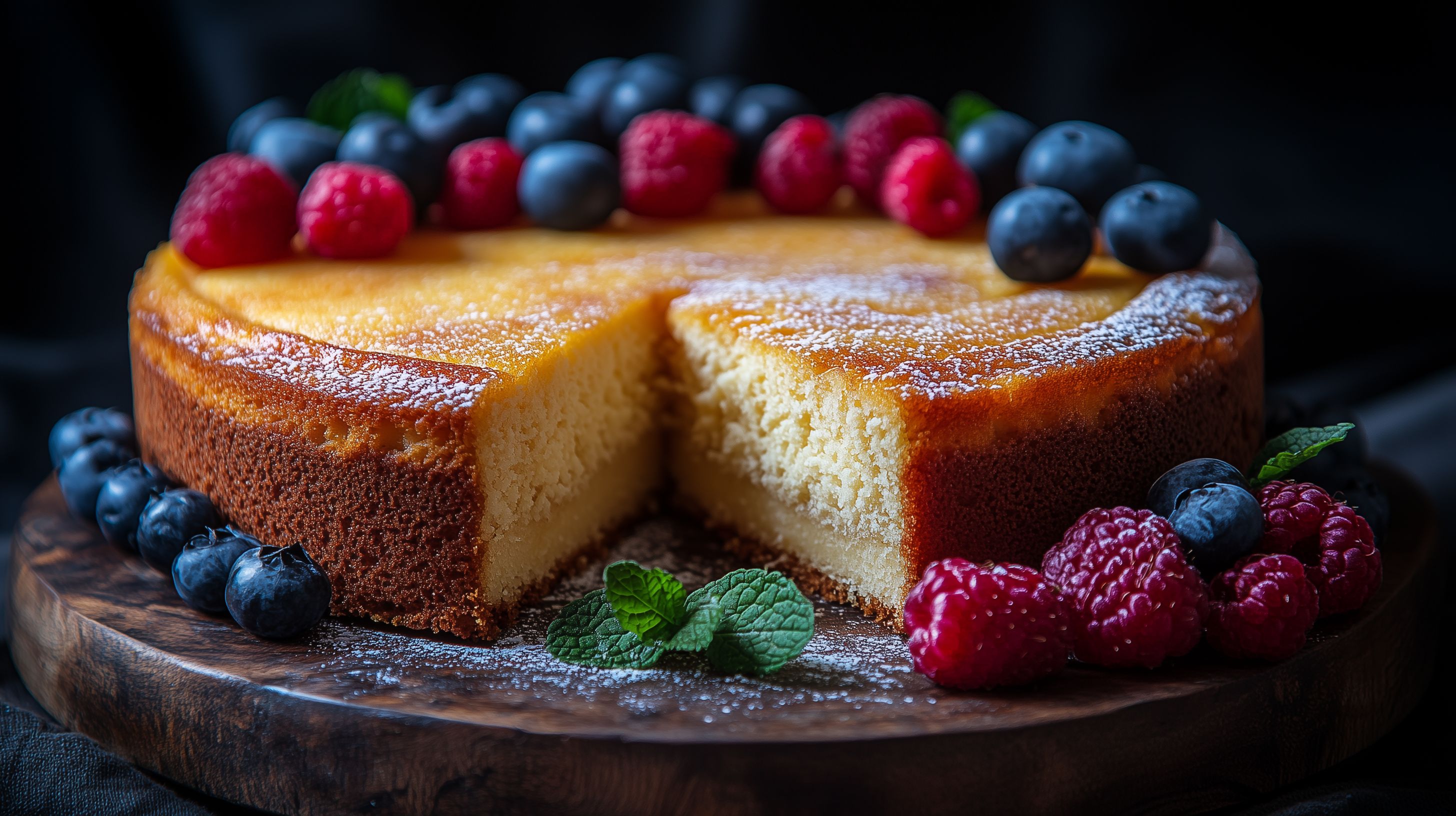 Dieses hochaufgelöste Stockfoto zeigt einen herrlich goldbraunen Ricottakuchen, der mit verschiedenen frischen Beeren wie Blaubeeren, Himbeeren und Brombeeren dekoriert ist. Der Kuchen ist auf einer rustikalen Holzschale angerichtet und strahlt eine natürliche, appetitanregende Optik aus. Das Foto eignet sich hervorragend als Hingucker für Blogs, Newsletter, Social-Media-Beiträge oder Werbematerial rund um das Thema Backen, Genuss und gesunde Ernährung. Das Bild ist unter einer kostenlosen Creative-Commons-Lizenz verfügbar und in hoher Auflösung erhältlich.