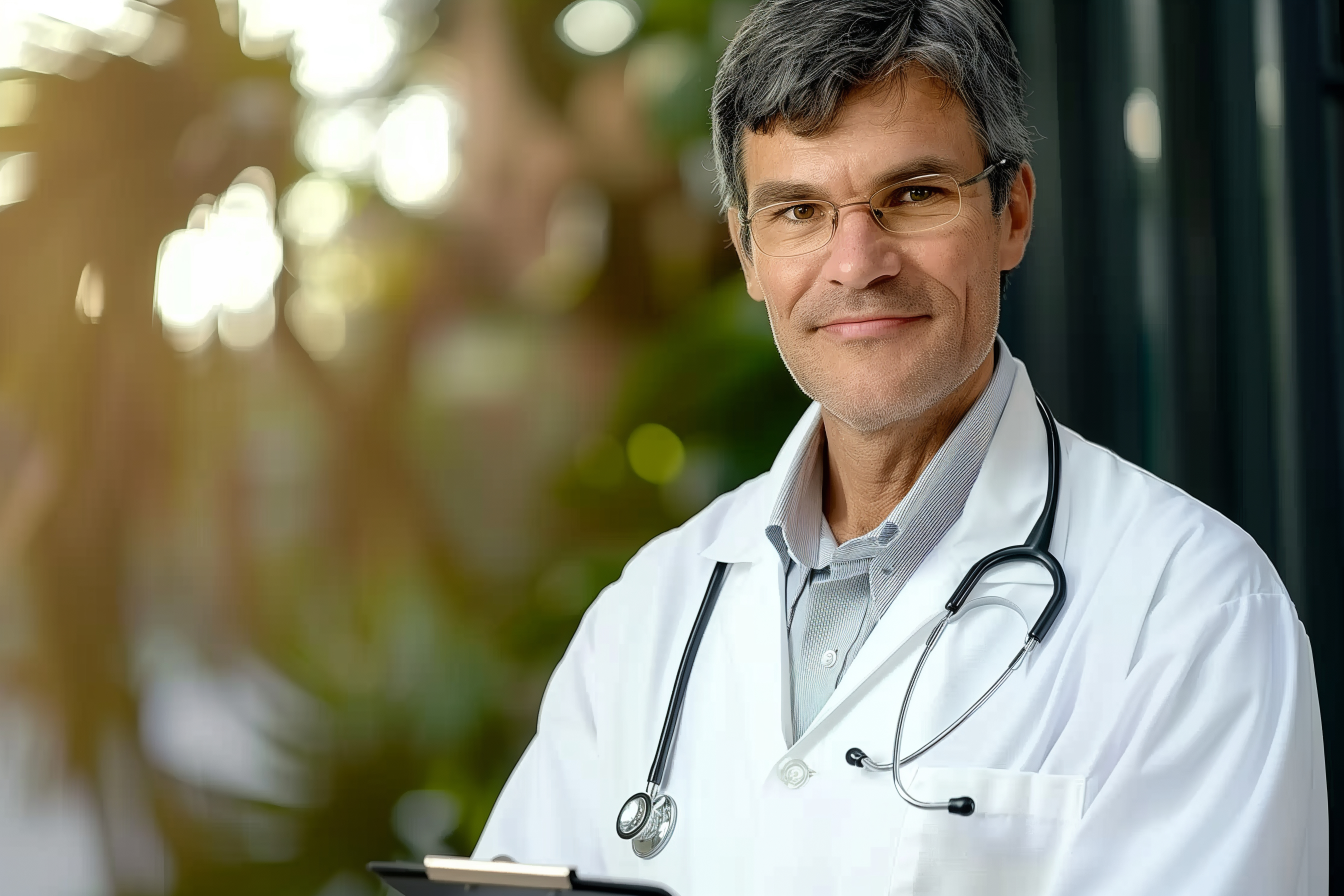 Dieses Stockfoto zeigt einen Arzt in einem weißen Mantel mit Stethoskop, der draußen in einer natürlichen Umgebung mit unscharfem, grünem Hintergrund und Sonnenstrahlen steht. Der ernsthafte Gesichtsausdruck und die aufrechte Körperhaltung des Arztes deuten auf eine professionelle, fachärztliche Beratungssituation hin. Dieses Foto eignet sich hervorragend für den Einsatz in Blogbeiträgen, Newslettern oder Social-Media-Posts zum Thema Gesundheit, Medizin und ärztliche Expertise. Als hochwertiges, kostenloses Stockfoto unter Creative-Commons-Lizenz ist es für eine Vielzahl von Anwendungen verfügbar.