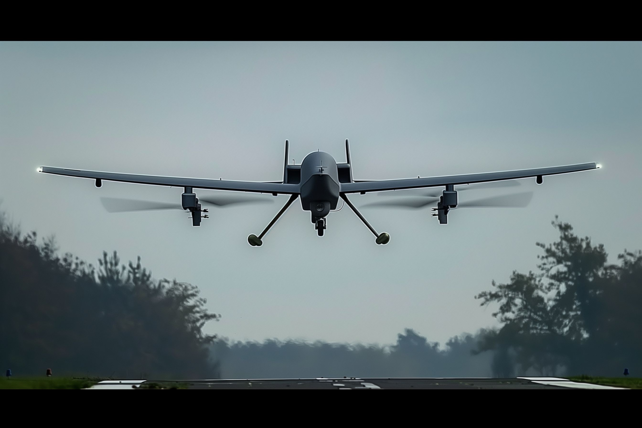 Dieses Foto zeigt eine Drohne, die über einer grünen Landschaft mit Wäldern und Wiesen schwebt. Die Drohne ist in der Mitte des Bildes positioniert und nimmt den Großteil des Bildraums ein. Ihre auffallende Silhouette und dunkle Farbe heben sich deutlich vom hellen, bewölkten Himmel und der begrünten Umgebung ab. Die Perspektive ist leicht erhöht, wodurch der Betrachter einen Überblick über die Landschaft erhält. Dieses Stockfoto eignet sich hervorragend für Beiträge in Blogs, Newsletter oder Social-Media-Posts, die sich mit Themen wie Technik, Forschung, Mobilität oder Luftverkehr befassen. Es ist in hoher Auflösung verfügbar und unter einer Creative-Commons-Lizenz kostenfrei nutzbar.