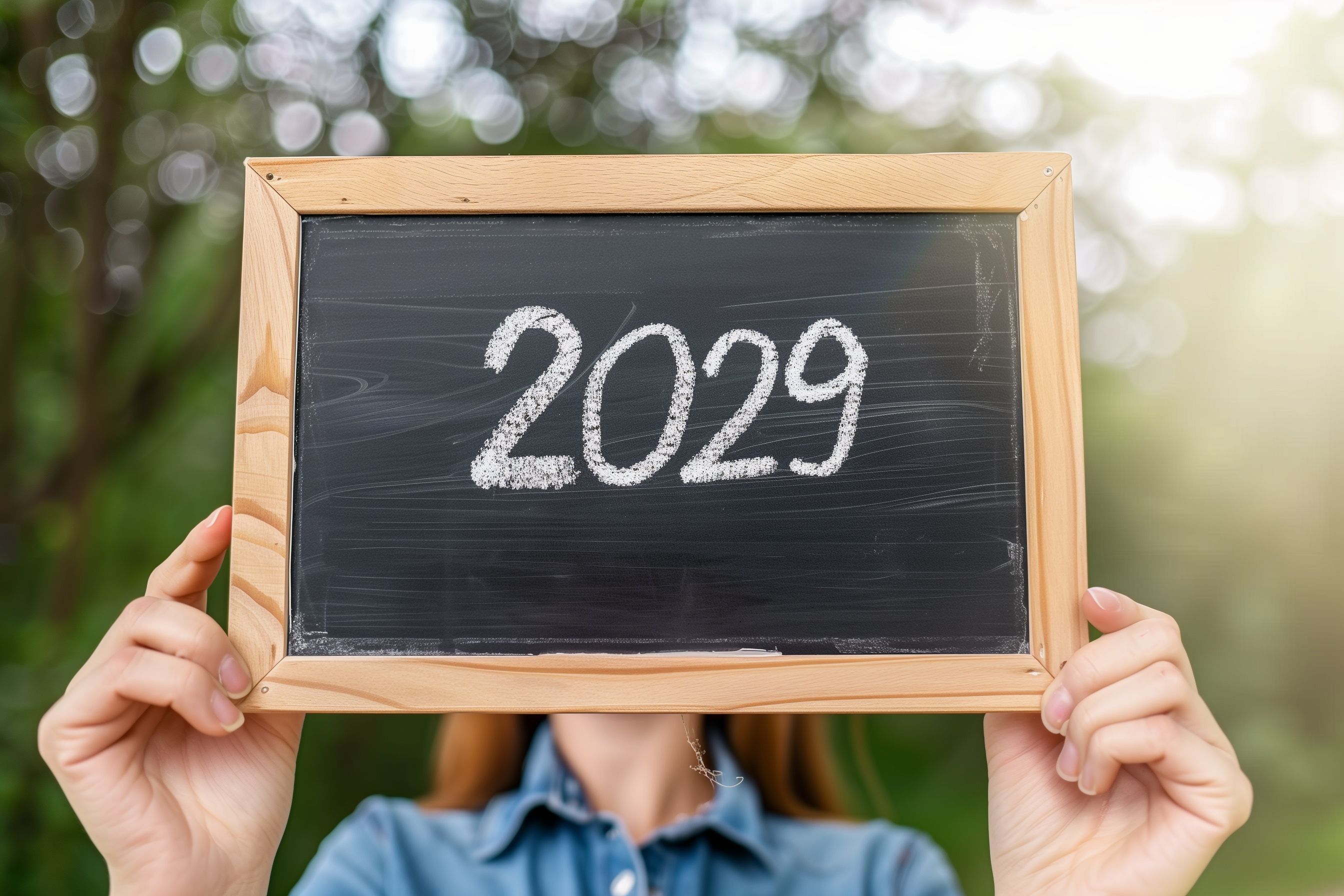Das Bild zeigt eine Tafel mit der Aufschrift '2029' in Kreide. Die Tafel befindet sich vor einem unscharfen, grünen Hintergrund, was einen natürlichen Eindruck vermittelt. Die Perspektive lässt vermuten, dass die Tafel von Menschenhänden gehalten wird, was dem Bild einen persönlichen Touch verleiht. Dieses Foto eignet sich gut für Beiträge zu Themen wie Neujahrsvorsätze, Zukunftsplanung oder Inspiration für das kommende Jahr. Es kann beispielsweise in Blogs, Newslettern oder auf Social-Media-Kanälen verwendet werden, um die Aufmerksamkeit der Betrachter zu wecken und positive Assoziationen mit dem neuen Jahr zu schaffen. Dieses hochauflösende, kostenlose Stockfoto steht unter einer Creative-Commons-Lizenz zur Verfügung.