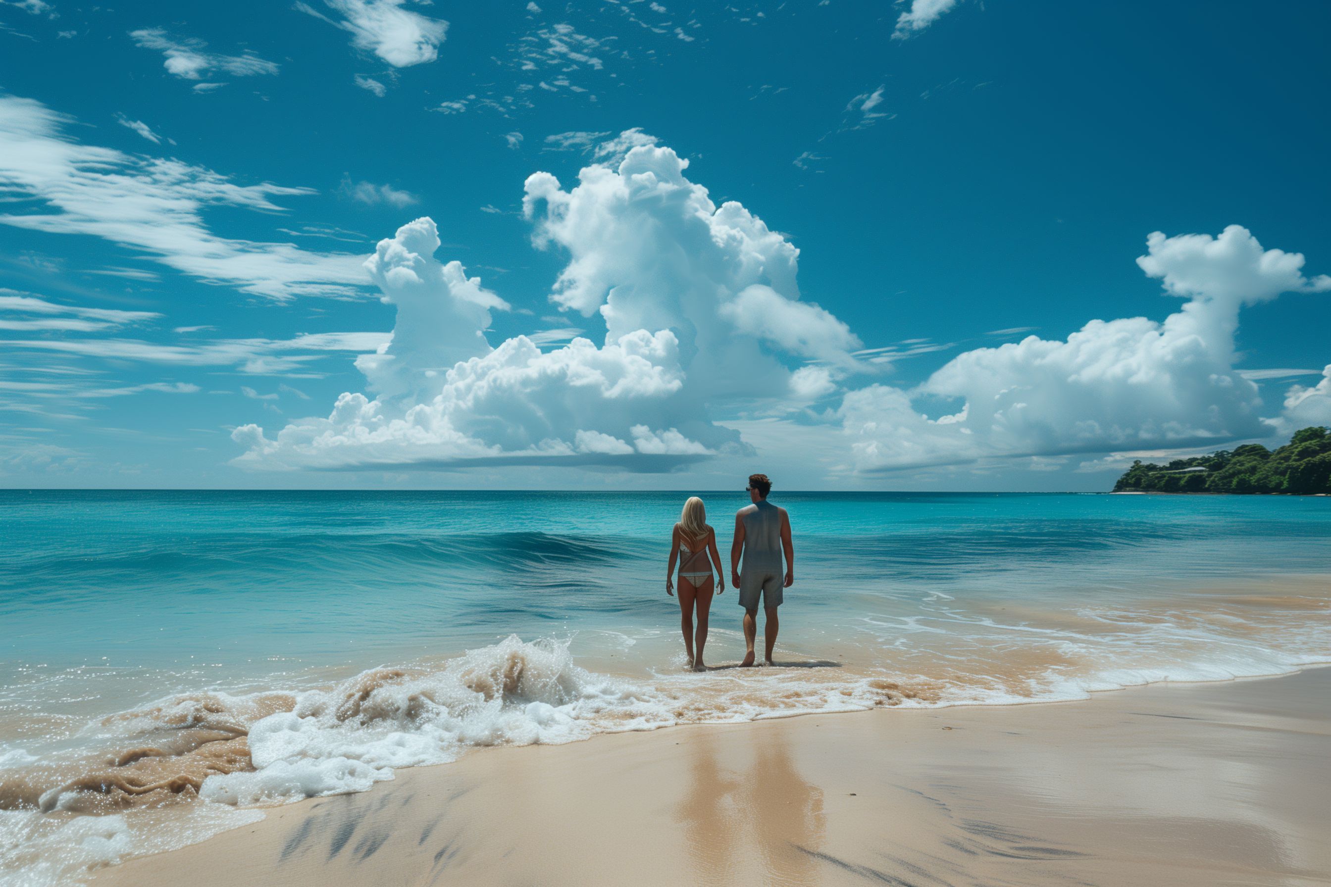 Dieses Foto zeigt ein entspannendes Strandidyll. Ein Paar steht am Wasser, umgeben von der türkisblauen Karibik und einem dramatischen Himmel voller Wolken. Die Perspektive lässt den Betrachter in die Szenerie eintauchen und die Ruhe und Freiheit des Moments spüren. Dieses kostenlose Stockfoto in hoher Auflösung ist unter der Creative-Commons-Lizenz verfügbar und eignet sich hervorragend für Werbeanzeigen, Blogbeiträge, Social-Media-Kampagnen oder Illustrationen in Newslettern zum Thema Reisen, Urlaub und Wellness.