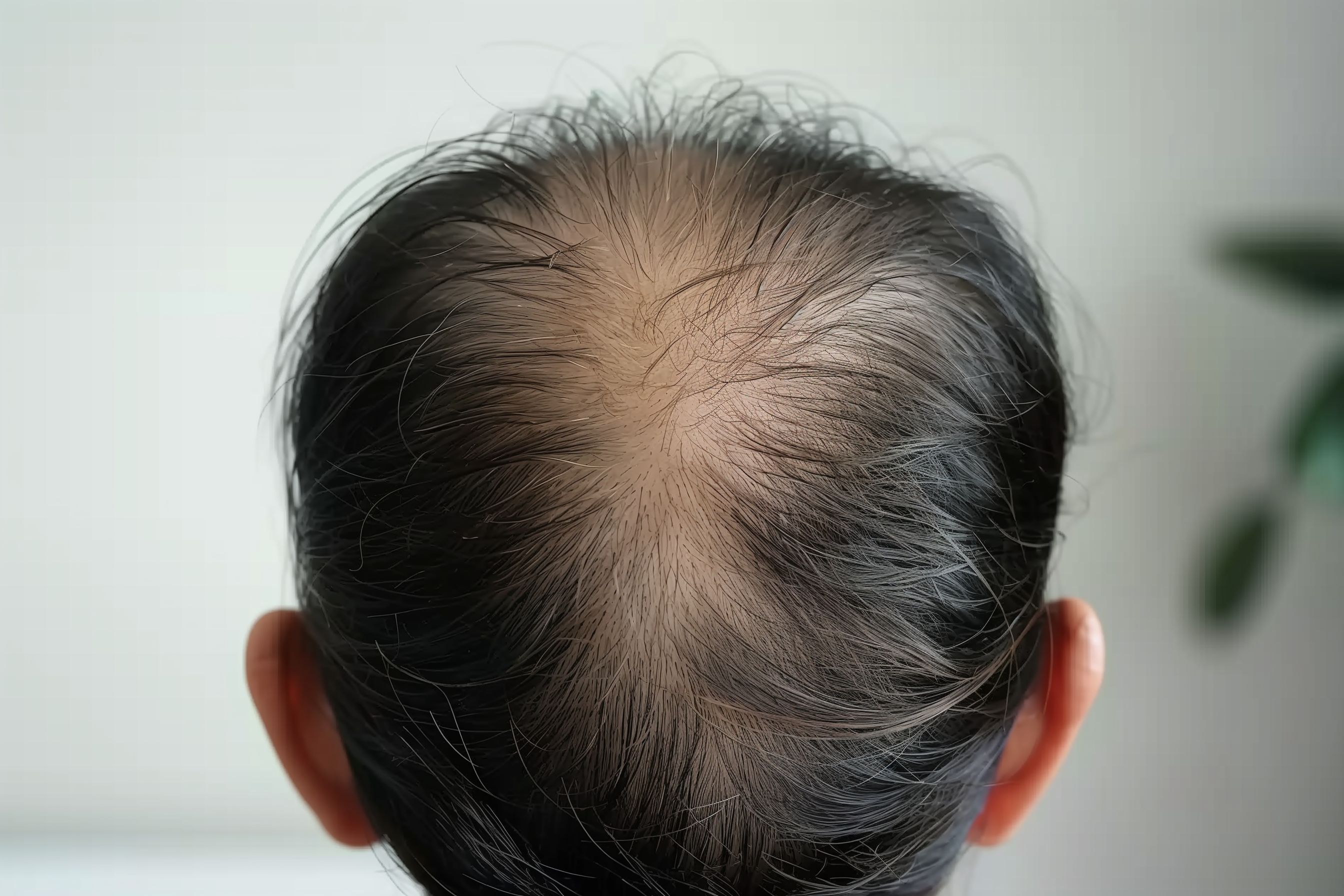 Die Aufnahme zeigt eine Nahaufnahme des Hinterkopfes eines Mannes mit deutlich erkennbarem Haarausfall. Die Kamera fokussiert auf die Kopfhaut, die von der dunklen Haarpracht nur noch spärlich bedeckt ist. Die Haare sind unordentlich und lassen die fortschreitende Kahlheit erkennen. Das Bild vermittelt einen medizinischen, aber auch persönlichen Eindruck des Themas Haarausfall, das viele Männer im Laufe ihres Lebens betreffen kann. Das Foto eignet sich hervorragend für Beiträge zu Gesundheitsthemen, Ratgeber-Artikel oder Werbematerial rund um Haarverlust und Behandlungsmöglichkeiten. Als hochwertiges, kostenloses Stockfoto in Creative-Commons-Lizenz kann es vielseitig in Onlinemedien eingesetzt werden.