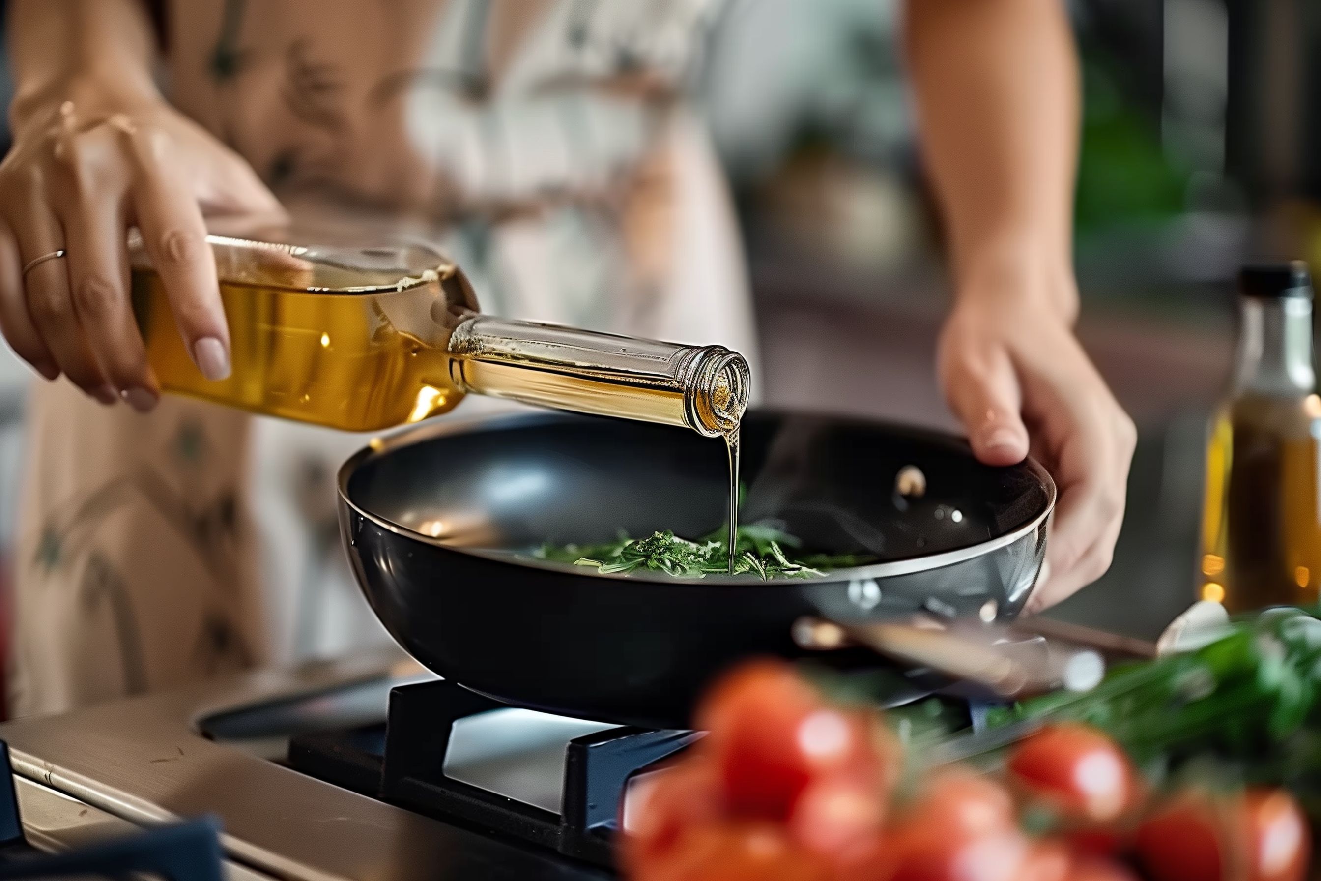 Dieses Stockfoto zeigt eine Person, die einen Tomatensalat in einer rustikalen Schüssel zubereitet. Das Bild ist von oben aufgenommen und zeigt die Hände, die Olivenöl in die Schüssel mit Tomaten und Kräutern gießen. Im Hintergrund sind weitere Zutaten wie Gewürzflaschen und Gemüse zu sehen. Das Foto hat einen warmen, natürlichen Farbton und eine einladende, lebendige Atmosphäre. Es eignet sich hervorragend für den Einsatz in Blogbeiträgen, Newslettern oder Werbematerialien rund um das Thema Kochen, gesunde Ernährung und Lifestyle. Dieses hochauflösende Stockfoto steht unter der Creative-Commons-Lizenz zur kostenlosen Verwendung zur Verfügung.