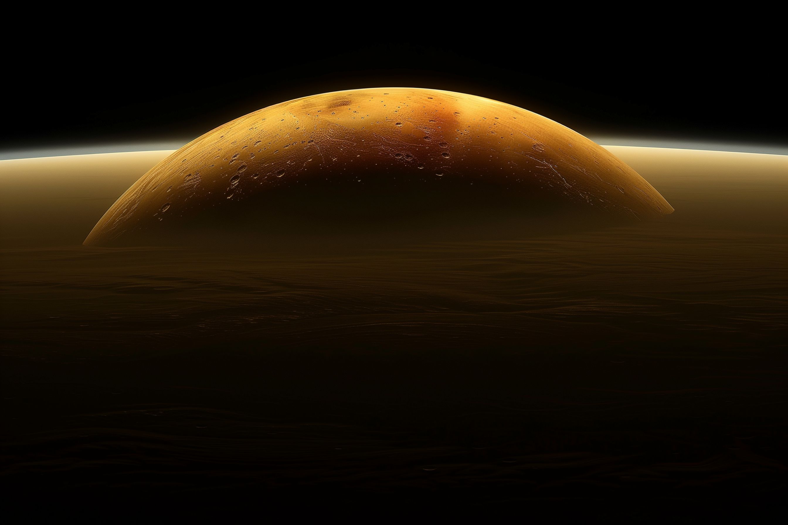 Diese atemberaubende Aufnahme zeigt den Roten Planeten Mars in all seiner Pracht bei Dämmerung. Die sanften Lichtreflexe auf der felsigen Oberfläche und die dramatische Rotfärbung verleihen dem Bild eine geheimnisvolle, fast mystische Atmosphäre. Durch die geschickte Komposition und die Kontrastspiele entsteht ein faszinierendes Stimmungsbild, das die Faszination des Weltraums und die Entdeckerfreude des Menschen widerspiegelt.