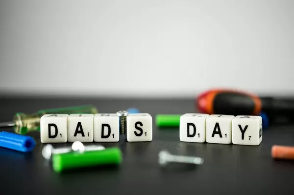 Buchstabenwürfel erinnern an den bevorstehenden Dad's Day - Vatertag