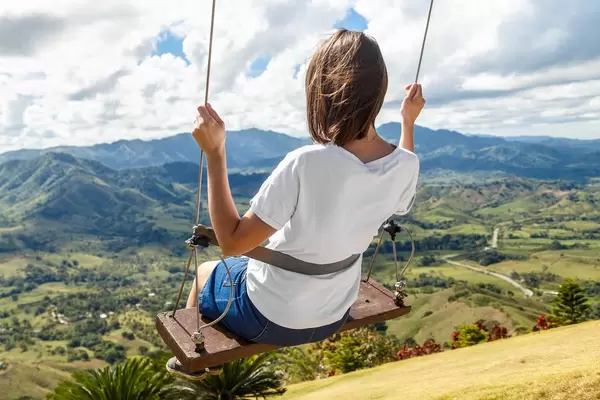 Girl on swing at the clouds in mountain Redonda at Dominican Republic Flip 2019
