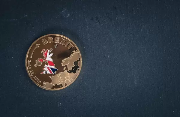 Brexit coin on a black background