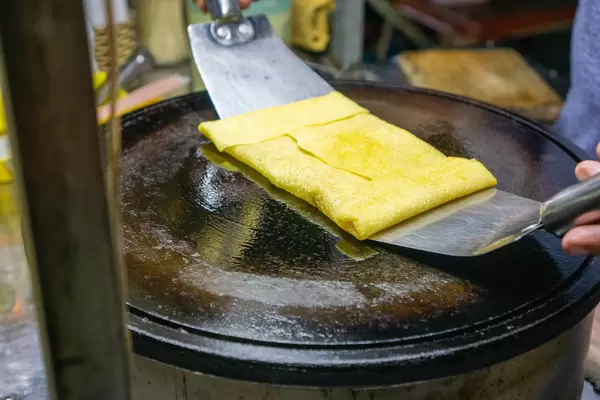 Close Up Food Photo of Sweet Banana Roti at a Street Food Cart at the Night Market in Hoi An, Vietnam