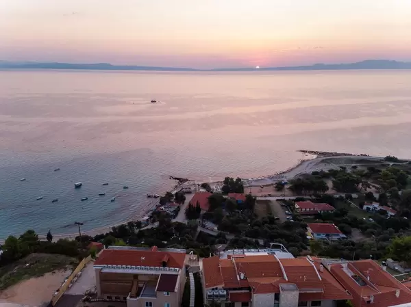 Bird's eye view of Rigas Hotel Afitos at sunset