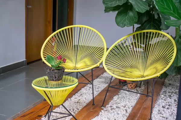 Seating Area with Plants and Table inside a Homestay in Dalat, Vietnam