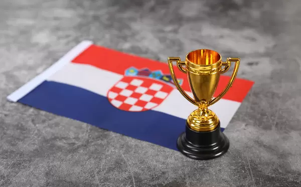Golden trophy with flag of Croatia
