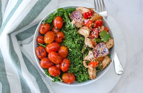 Chicken Bowl with Tomatoes, Kale and Sesame Seeds