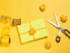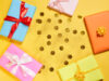 Portrait of a girl on a blurred background of a christmas tree and gifts
