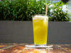 Person holding a Small Glass Bottle of Freshly Pressed Juice with Carrot, Apple and Passion Fruit as Immunity Booster in…